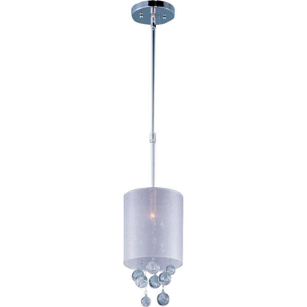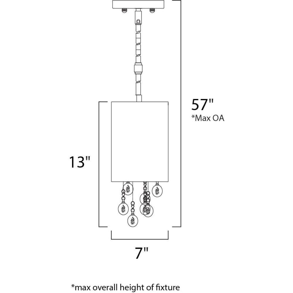 Beveled crystal beads mysteriously appear through the Veil collection's veil of Silver Sheer fabric and shimmer like diamonds in the night. Round bubble crystal suspended at various heights, create a unique accent. Shades are supported by multiple Polished Chrome stems for adjustable height.
