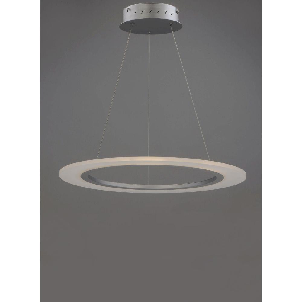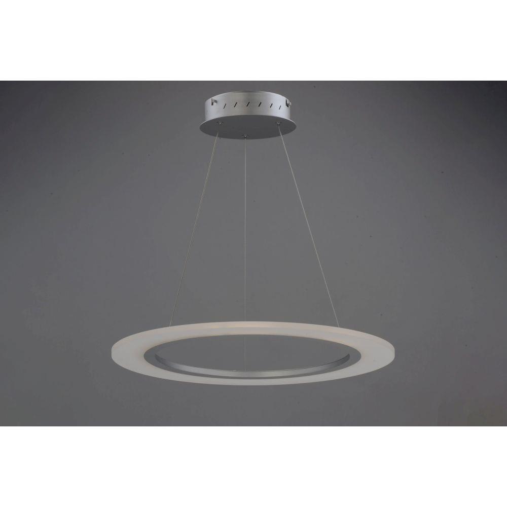 A new variation of a very popular series with many different configurations many of which are large scale for commercial applications. Metal rings of Matte Silver support horizontal acrylic diffusers which glow when illuminated by dimmable LED.