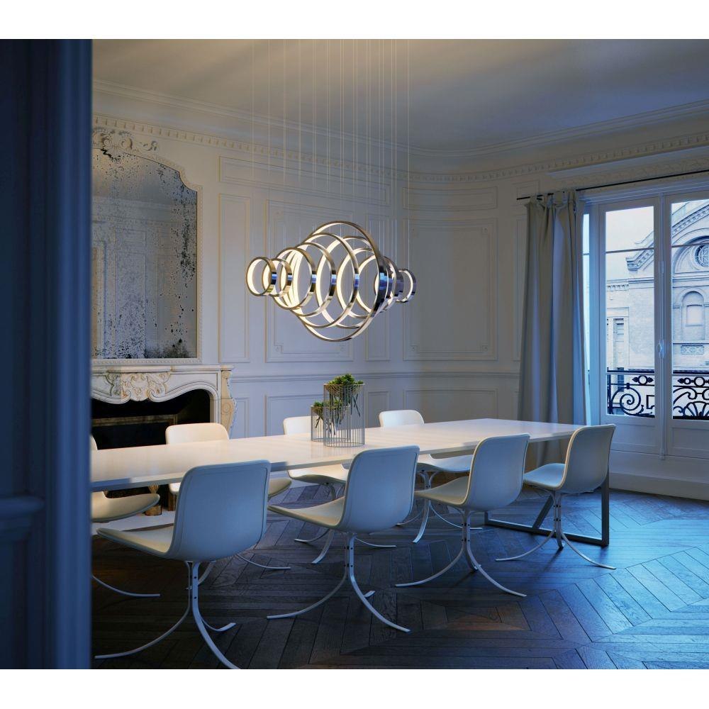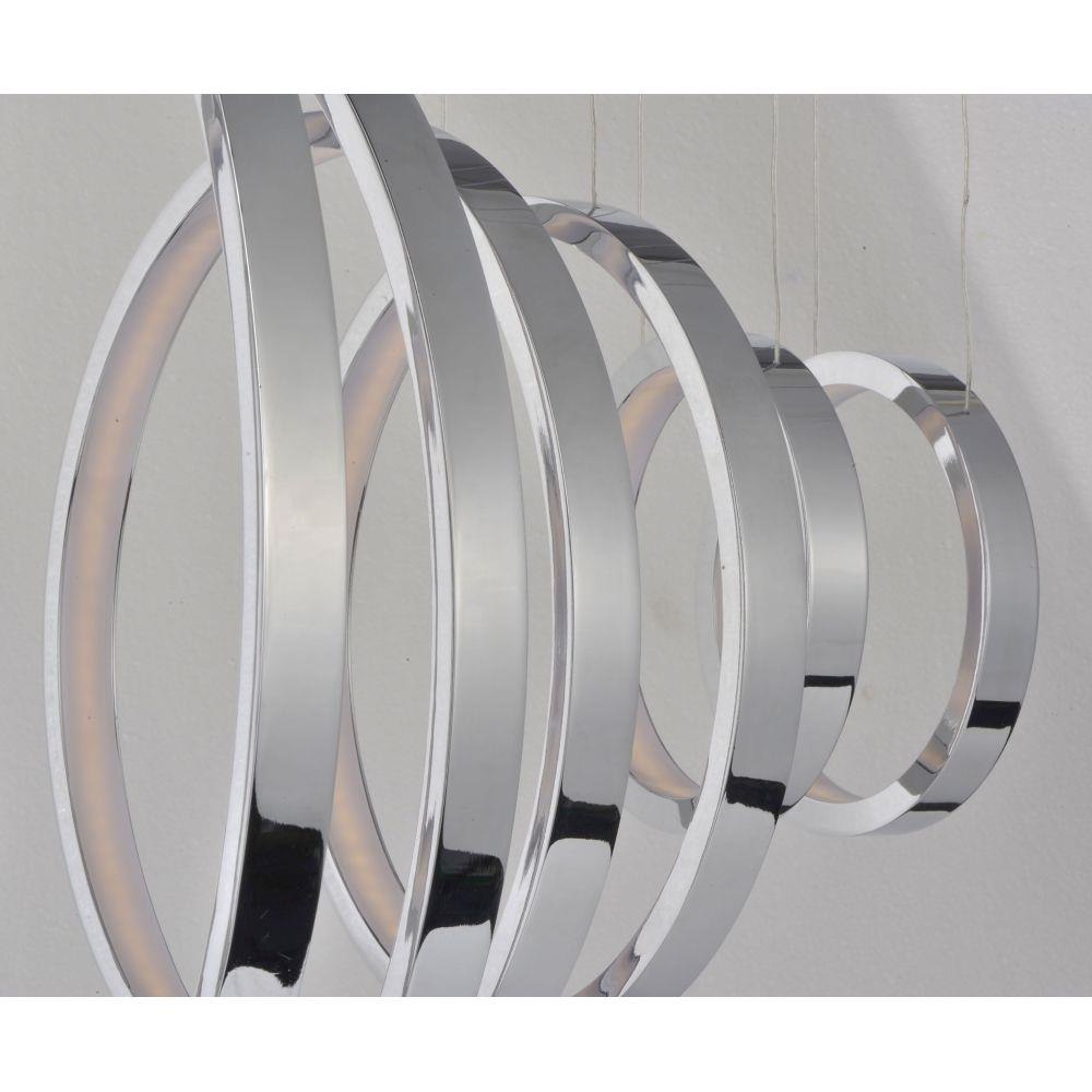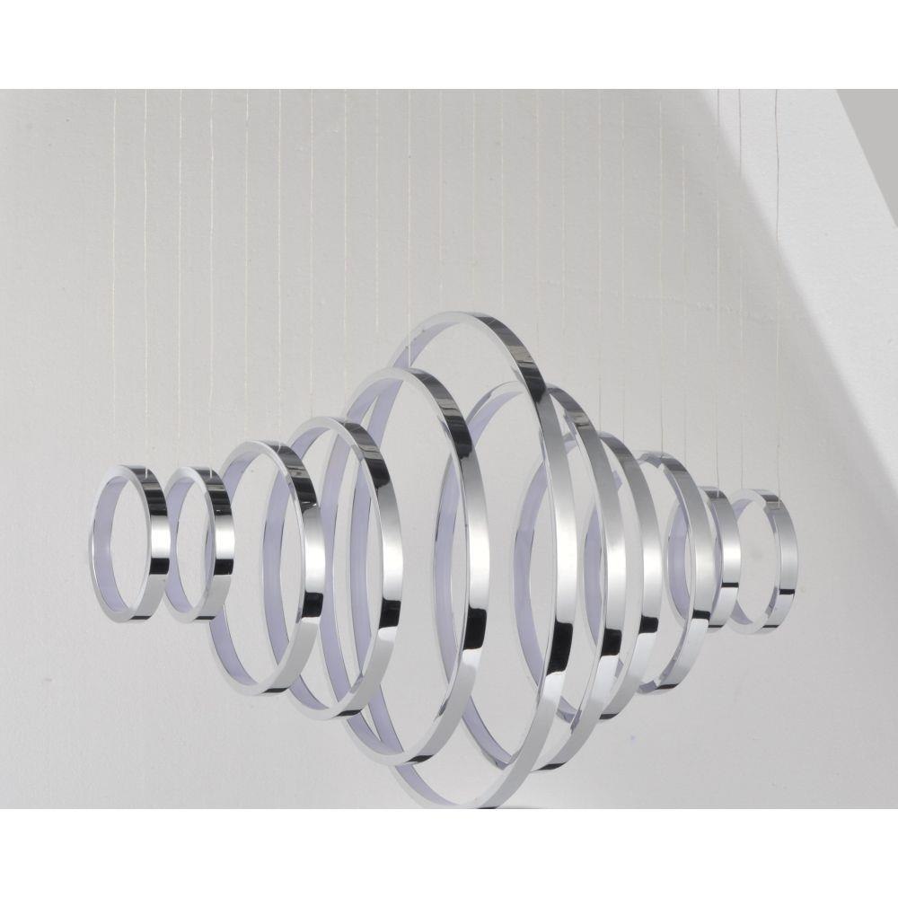 Multiple sizes of Polished Chrome hoops of light can be playfully arranged in various configurations for a power presentation. Continuous strips of LEDS are mounted inward towards the center of the hoop for an indirect display of light.