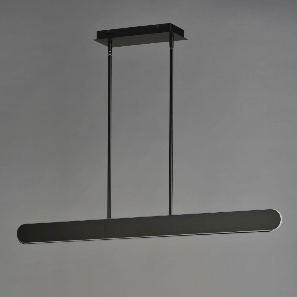 An articulating LED linear pendant finished in Matte Black that can extend or shorten according to the length required for various applications. Expand the lighting surface by pulling the panels at opposite ends away from each other. As the light source wraps around the edge of the panels, it casts light both upward and downward along its shape. Perfect for multipurpose areas, above a kitchen island or dining table, it is ideal when measurements fall between sizes or require flexibility, allowing you to precisely customize the pendant's width to the required measurements.