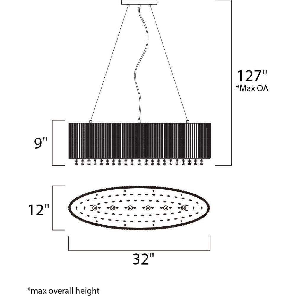 OVAL SHAPED FIXTURE MEASUREMENTS: Width: 12" Height: 9" Length: 32" Max Overall Height: 127" Min Overall Height: 27" Wire Length: 130" Canopy Width: 4.5" Canopy Height: 1" Canopy Length: 7"