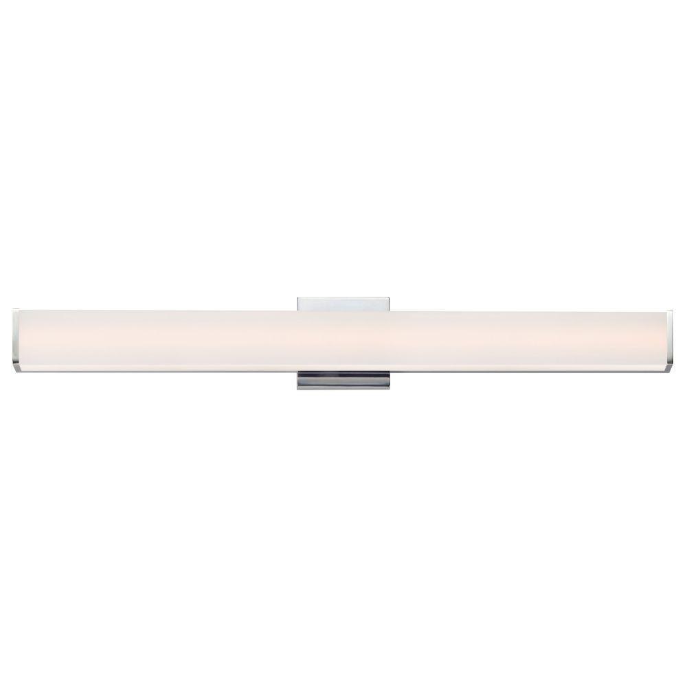Squares of Satin White glass are supported by flat Polished Chrome end caps with an extruded aluminum frame. Housed on the backside of the LED vanity light is a device to select from 5 color temperatures: 2700k-3000k-3500k-4000k-5000k. A dual mounting backplate allows for the fixture to seamlessly install to a switch box making the glass appear as if floating on the wall. An additional mounting bracket and cover plate is included in the packaging to accommodate larger junction boxes. Enhancing these features with a range voltage 120-277V input, makes this heavy hitting note land squarely into specification requests as well as the home improvement do-it-yourselfer.