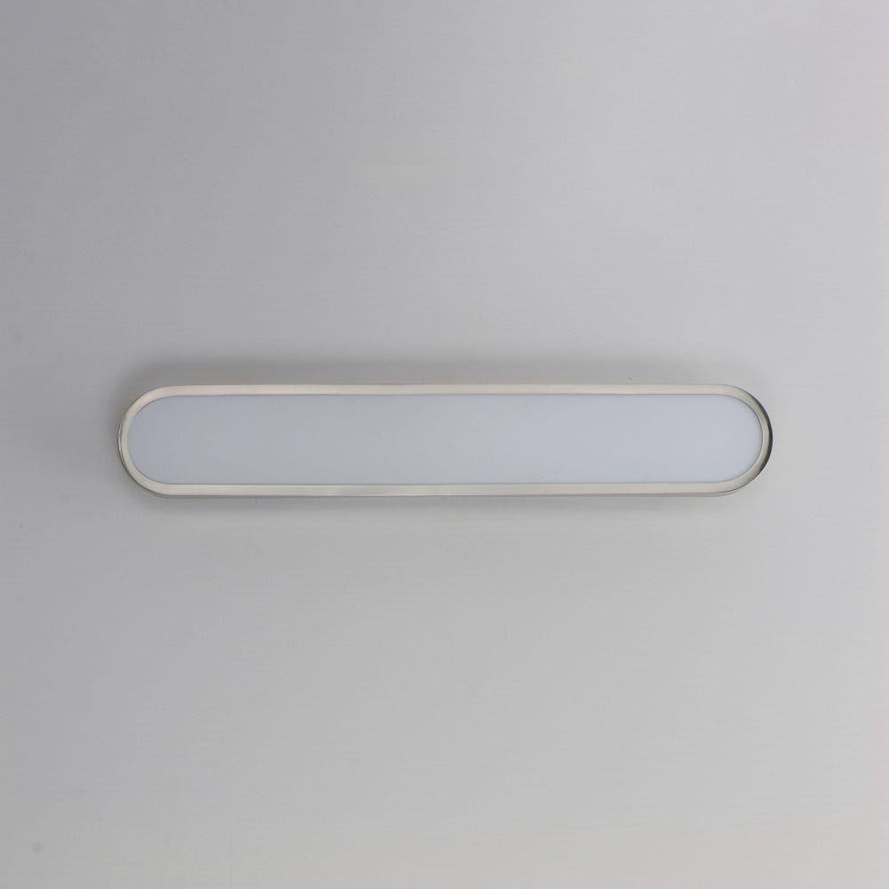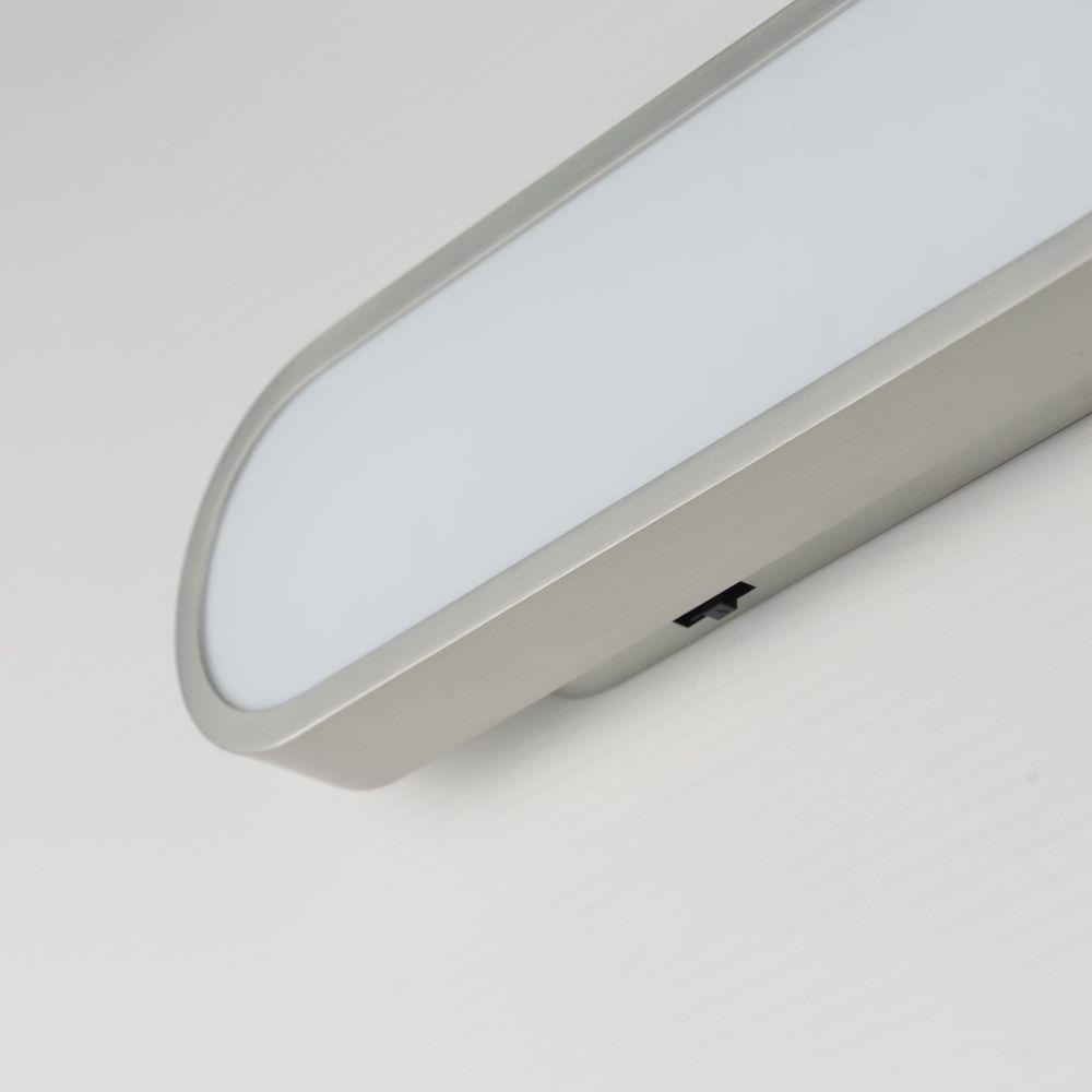 Soft oval forms offer a modern and playful touch to this LED wall mounted sconce. The face of the fixture is a light guided White acrylic diffuser that even illuminates the edge-lit LED light source. The sleek shape is made even more attractive by the bright illumination provided by the fixture itself. Great for use in bathrooms or corridors, the fixture is ADA compliant and available in 4 lengths. A recessed housing behind the fixture not only mounts the fixture with an attractive extension that makes it appear to be floating off the wall, but it also features a 5-step color temperature select switch allowing you to discreetly adjust the LED lighting to 5 settings ranging from a warmer 2700K to 3000-3500-4000 and daylight white 5000K. These additional product features thereby give more latitude to the design applications without special requests.