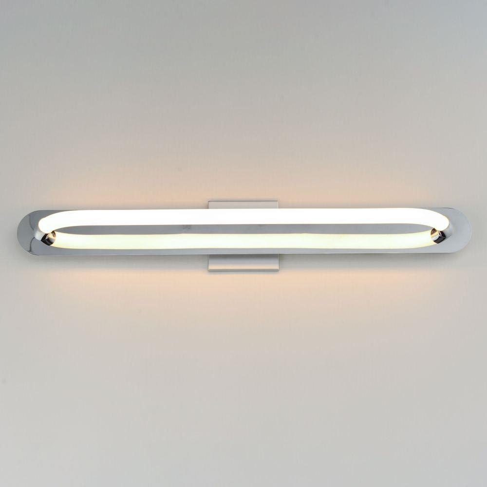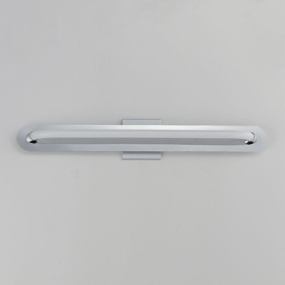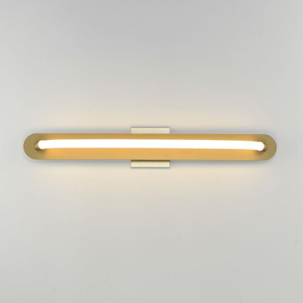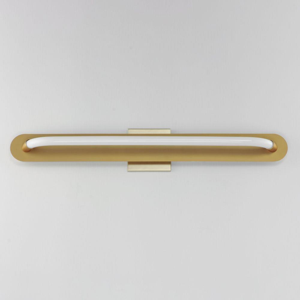 A single loop of white tubing features an omnidirectional LED light. The full backplate can be mounted on a single gang junction box for a clean installation and is available in either Polished Chrome or Gold. A five-inch cover plate is included for installation on standard 4-0 junction boxes.