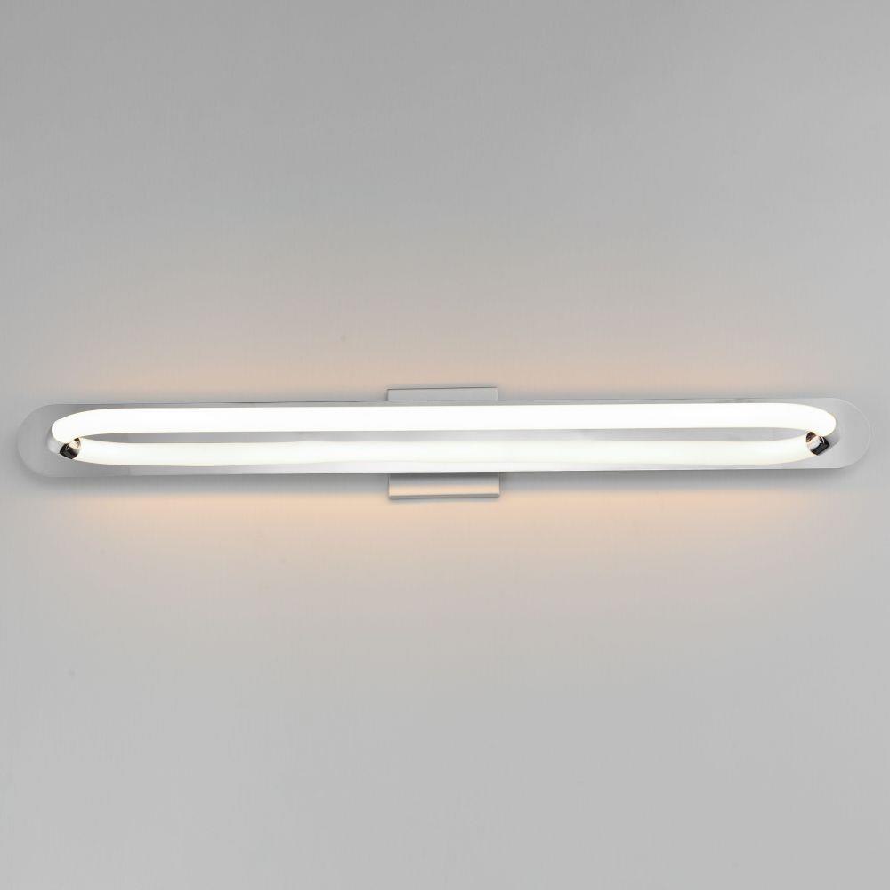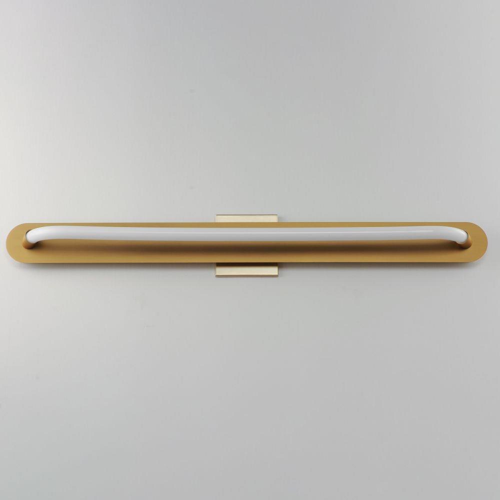 A single loop of white tubing features an omnidirectional LED light. The full backplate can be mounted on a single gang junction box for a clean installation and is available in either Polished Chrome or Gold. A five-inch cover plate is included for installation on standard 4-0 junction boxes.