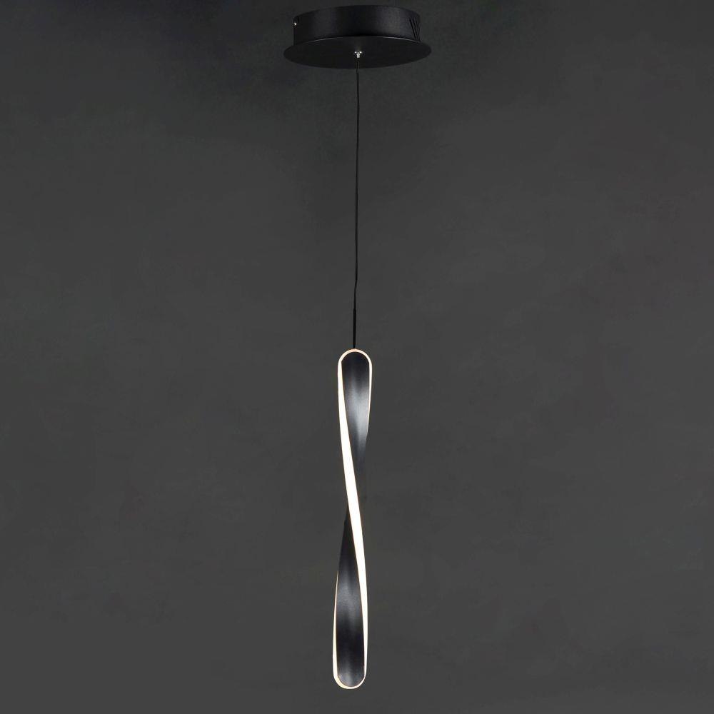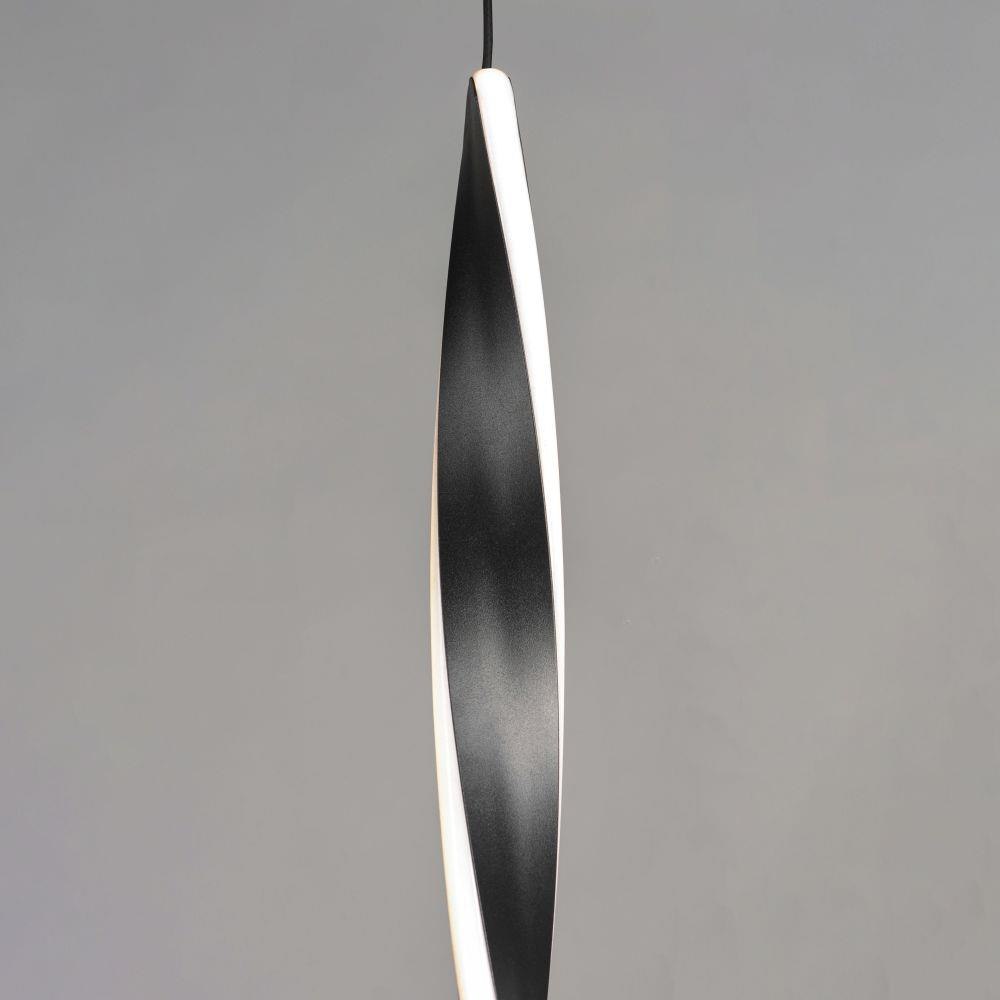 Twisted Black pendants are illuminated on the edge to create a spiral effect. Adjustable heights make it possible to create your own unique design.