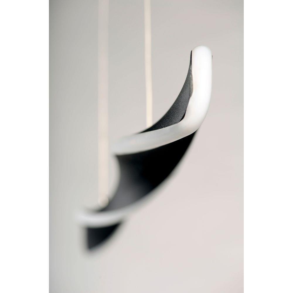 Twisted Black pendants are illuminated on the edge to create a spiral effect. Adjustable heights make it possible to create your own unique design.