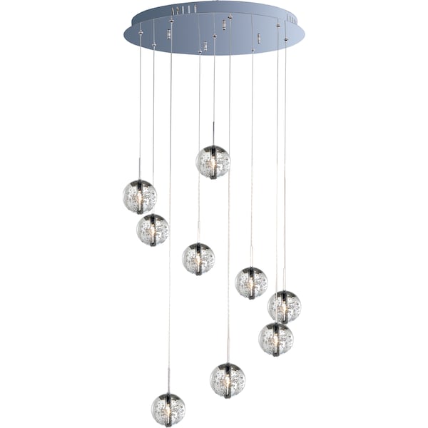Ablaze with xenon lamps radiating from the center of perfect spheres, the Orb Collection adds a sense of drama to any room. Clear bubble glass allows for a lustrous glow as light mimics the fluid play of water and air. Bordered with a Polished Chrome frame, the fixture mesmerizes onlookers with an innate mystery.?