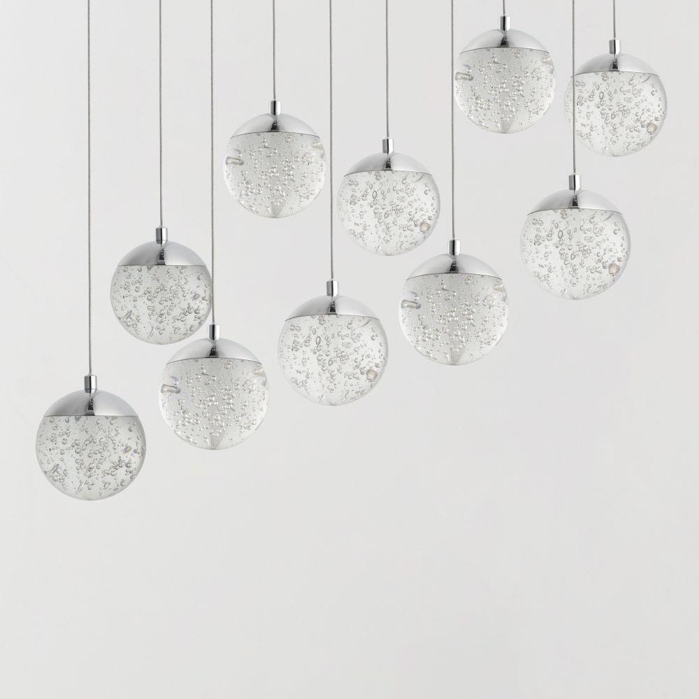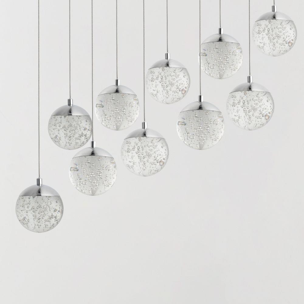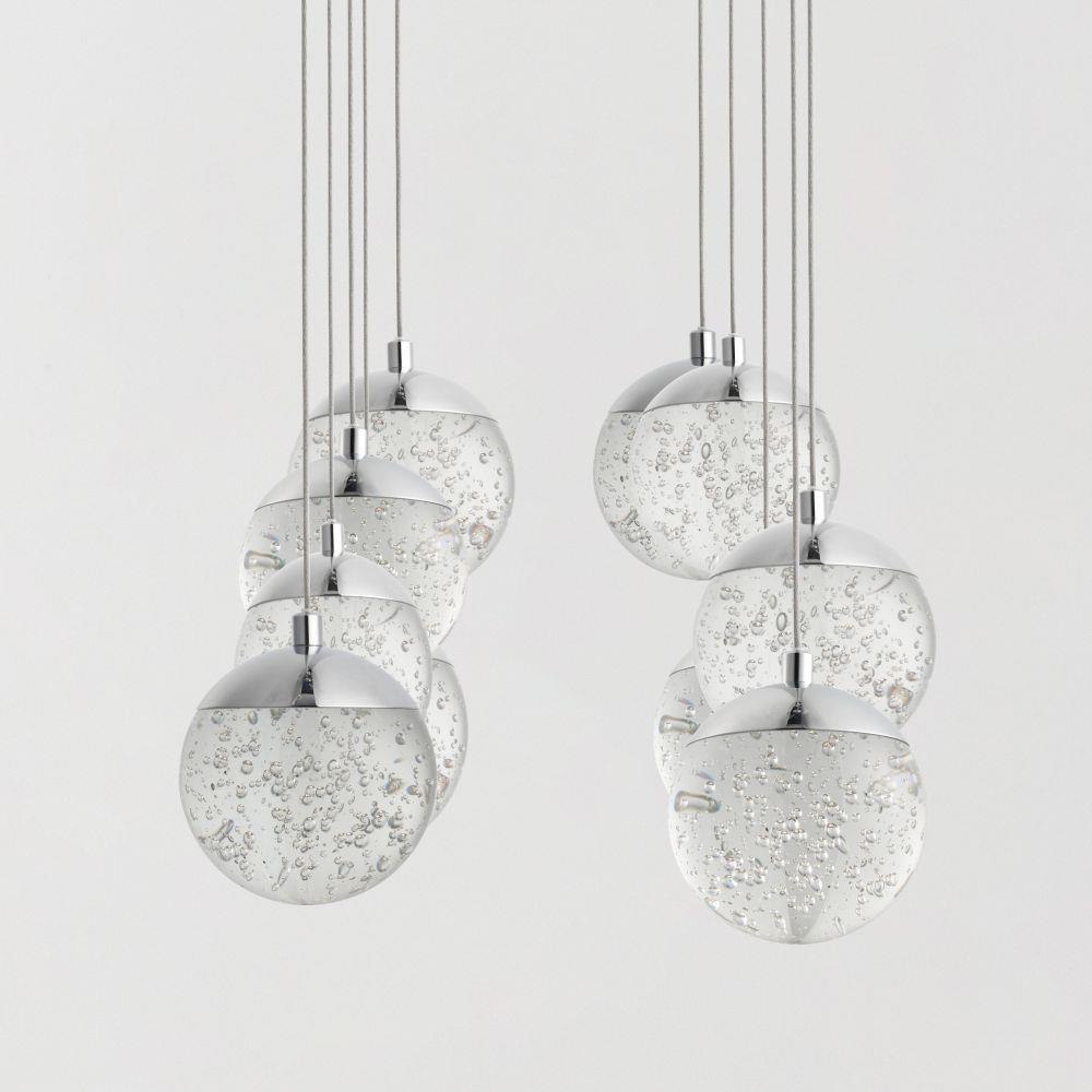 We took this popular collection and made it better. We took the xenon bulb out of the middle and enclosed a LED module in the cast Polished Chrome cap that supports the clear bubble glass balls. The glass screws into the cap so there are no visible screws for a very clean look.