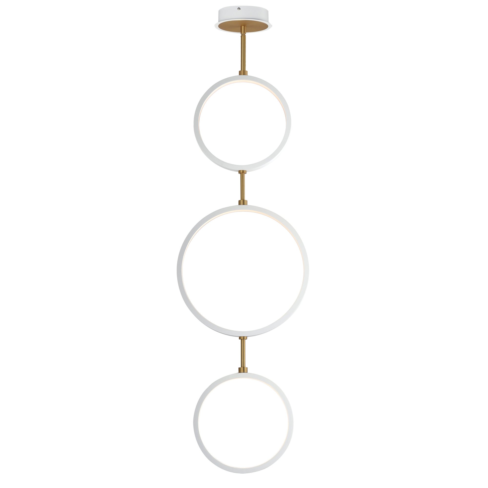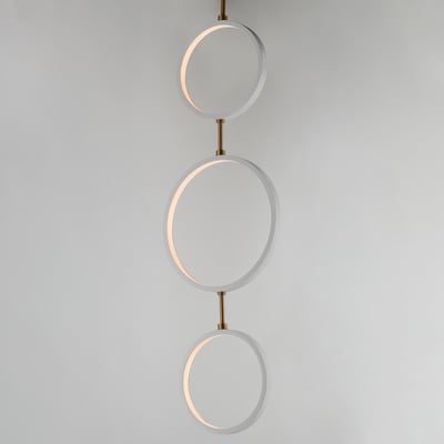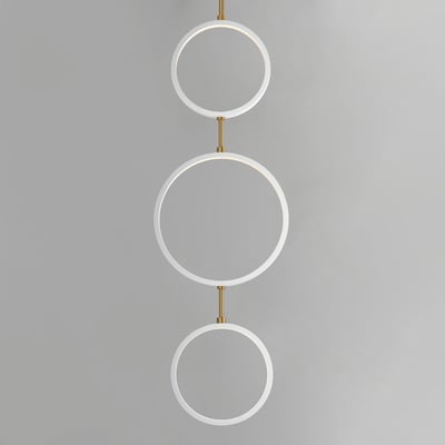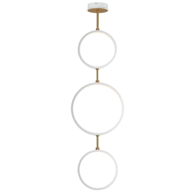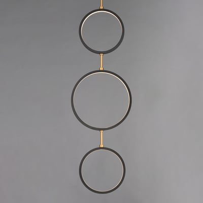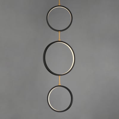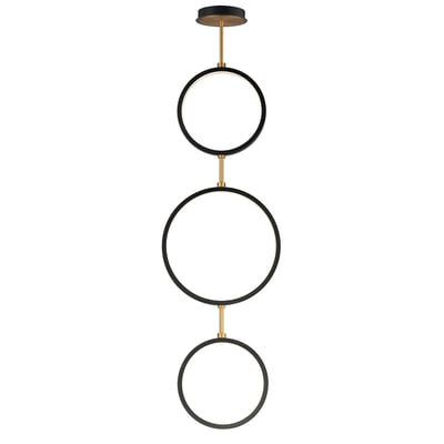 The Hoopla 3-Light LED Pendant showcases a harmonious blend of modern design and functional elegance. With its unique rings in black supported by a soft gold column, this pendant light complements contemporary home decor while providing ample illumination.