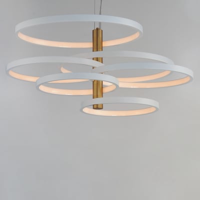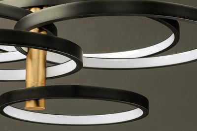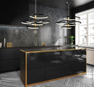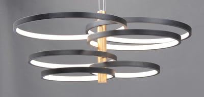 The Hoopla Pendant by ET2 is a stunning addition to any modern home. This European classic features rings of various sizes finished in Black, supported by a column of soft Gold.