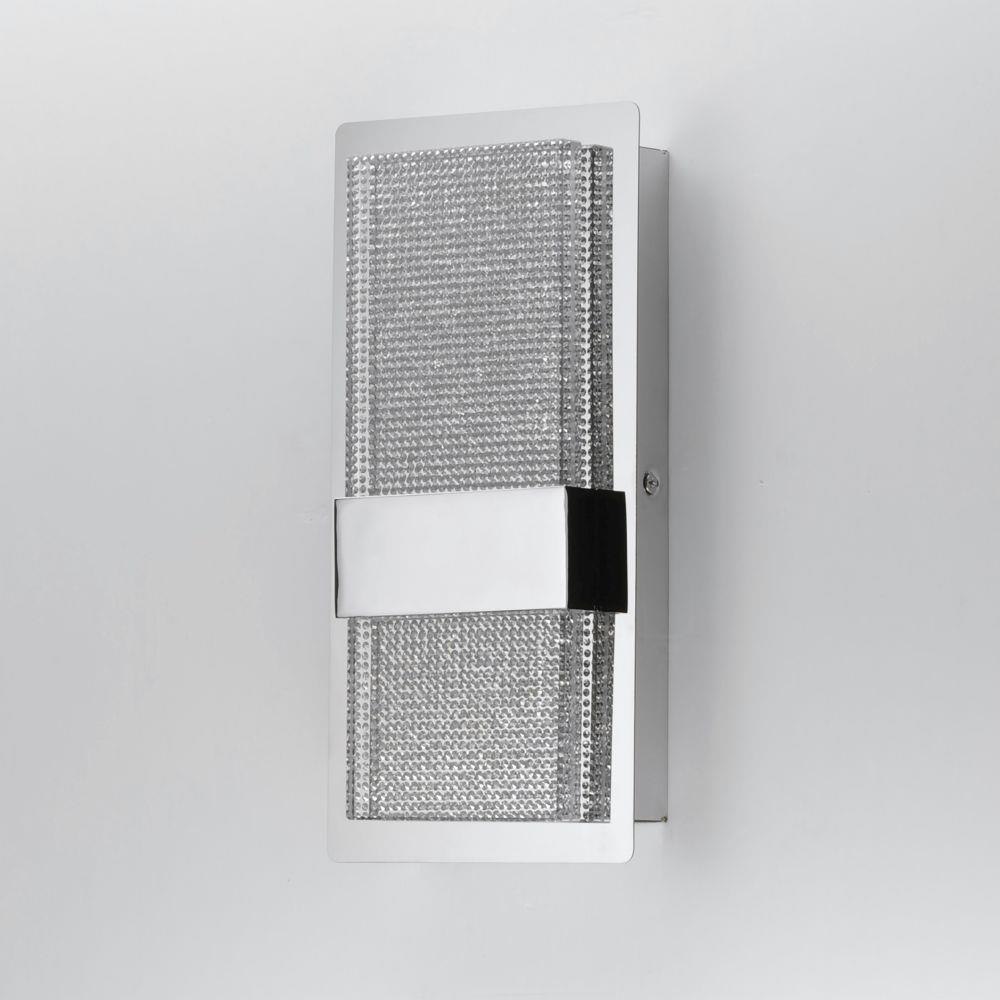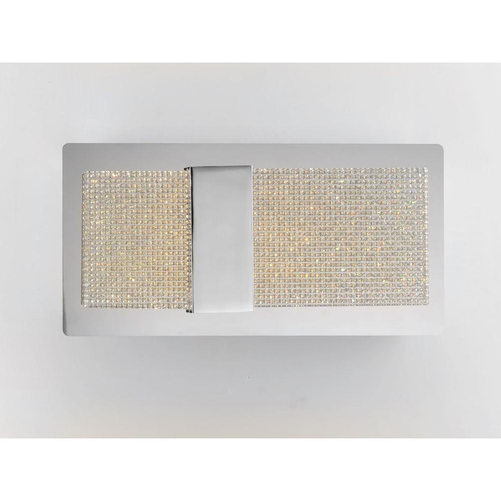 Thousands of miniature crystals are embedded into a sheet of clear acrylic which form a material we call Gemite. When illuminated by the LED mounted in the Polished Chrome frame the Gemite glistens like the stars in a galaxy. With the added downlight you get both glamour and ample lighting from this beautiful vanity collection.