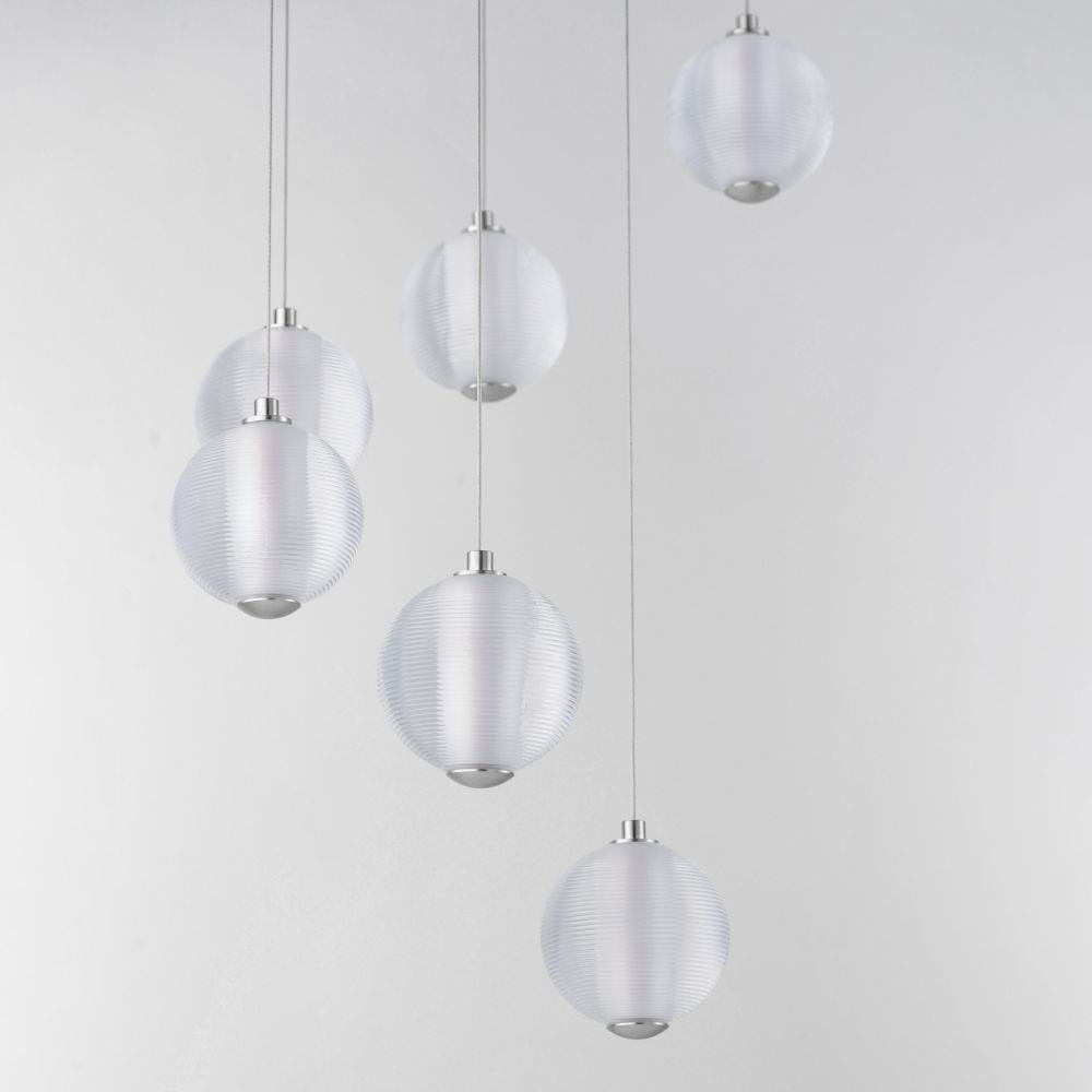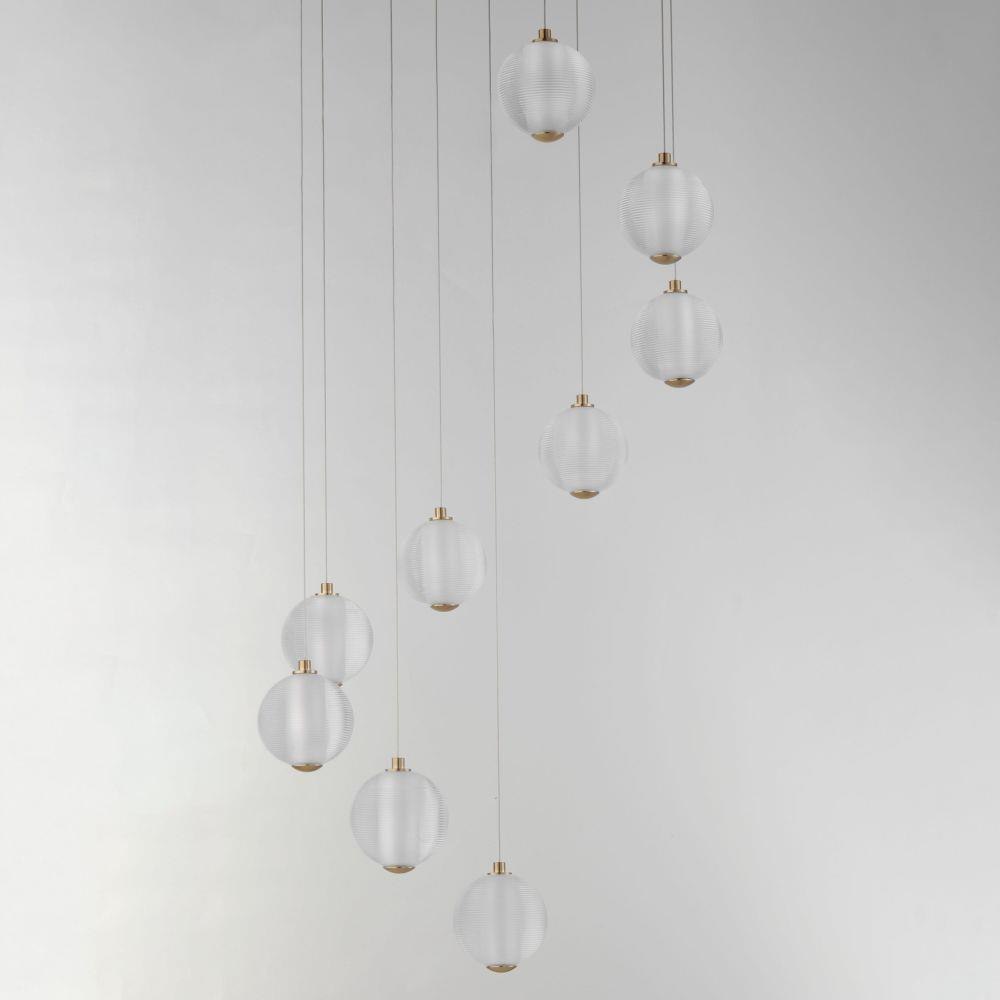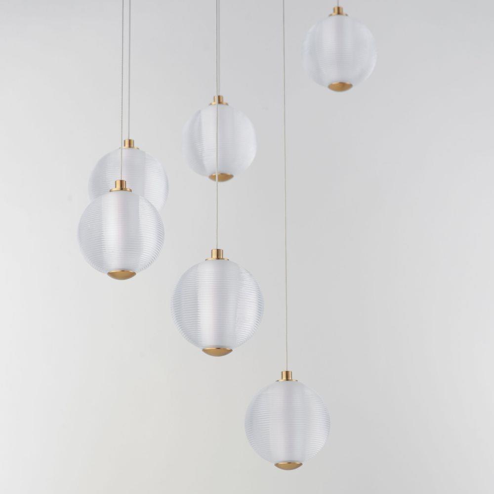 Ablaze with omnidirectional LED light radiating from the center of perfectly ribbed spheres, the lustrous glow within accentuates the repeating pattern on the glass' exterior. With minimal hardware visible outside the glass, select from Polished Chrome or Gold to match your interior's decor.