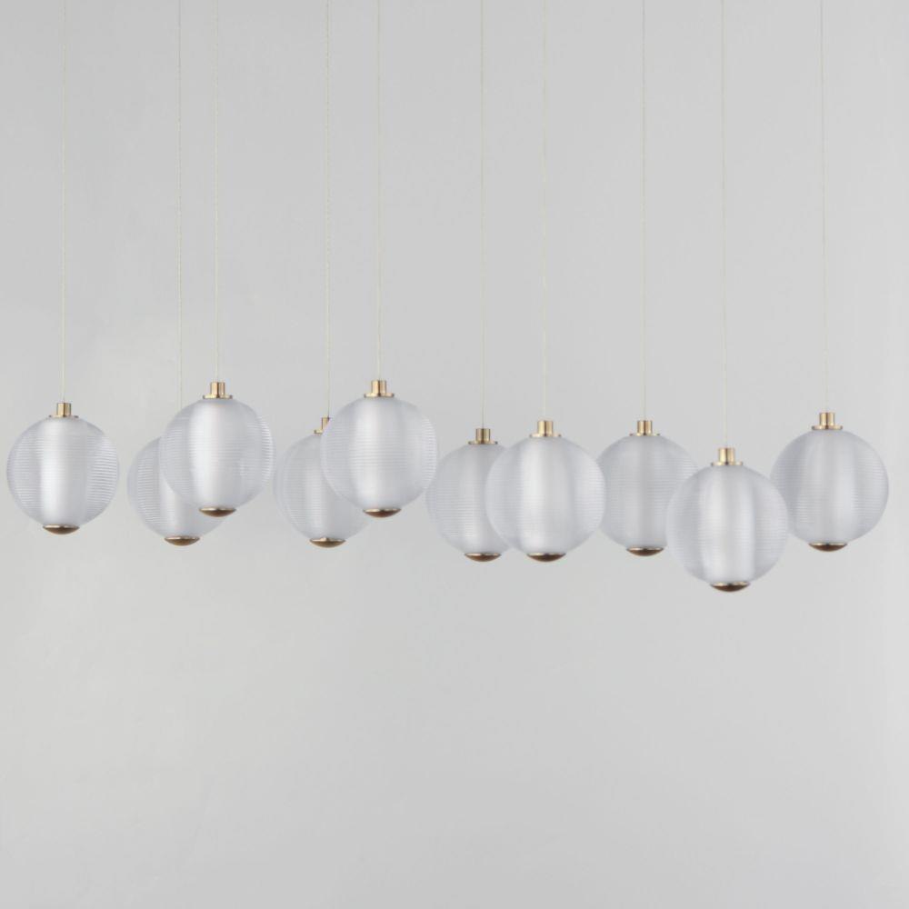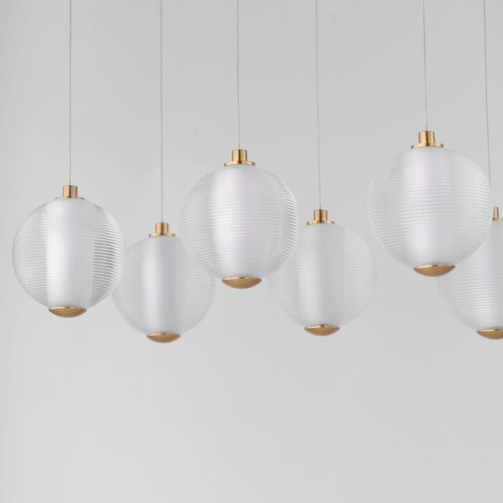 Ablaze with omnidirectional LED light radiating from the center of perfectly ribbed spheres, the lustrous glow within accentuates the repeating pattern on the glass' exterior. With minimal hardware visible outside the glass, select from Polished Chrome or Gold to match your interior's decor.