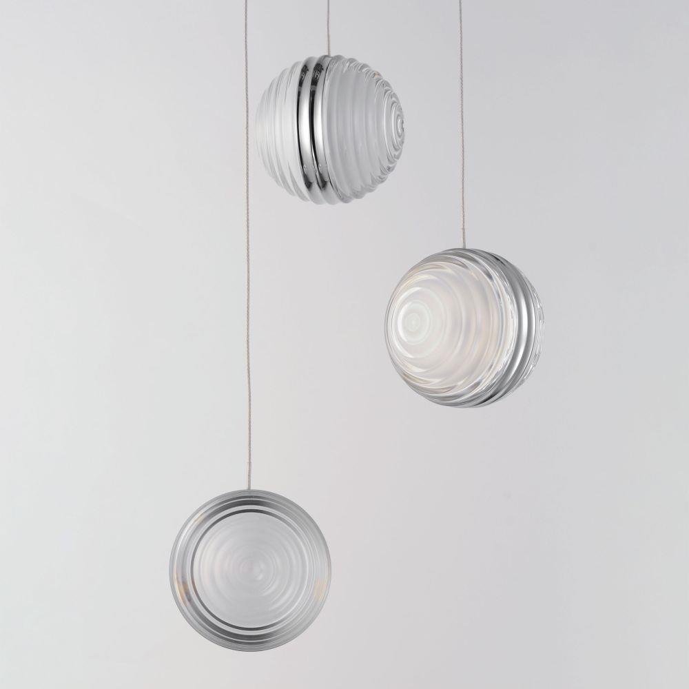 Ridged acrylic profiles extend in two halves along a coordinating aluminum extrusion in Polished Chrome. As if in motion, the form creates a frequency of light that is illuminated from internal LED integrated light sources. Available in a variety of configurations, this series is great for modern interiors.