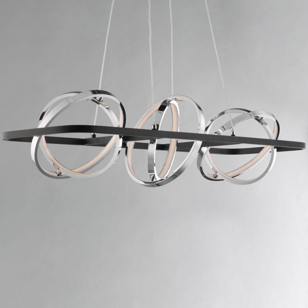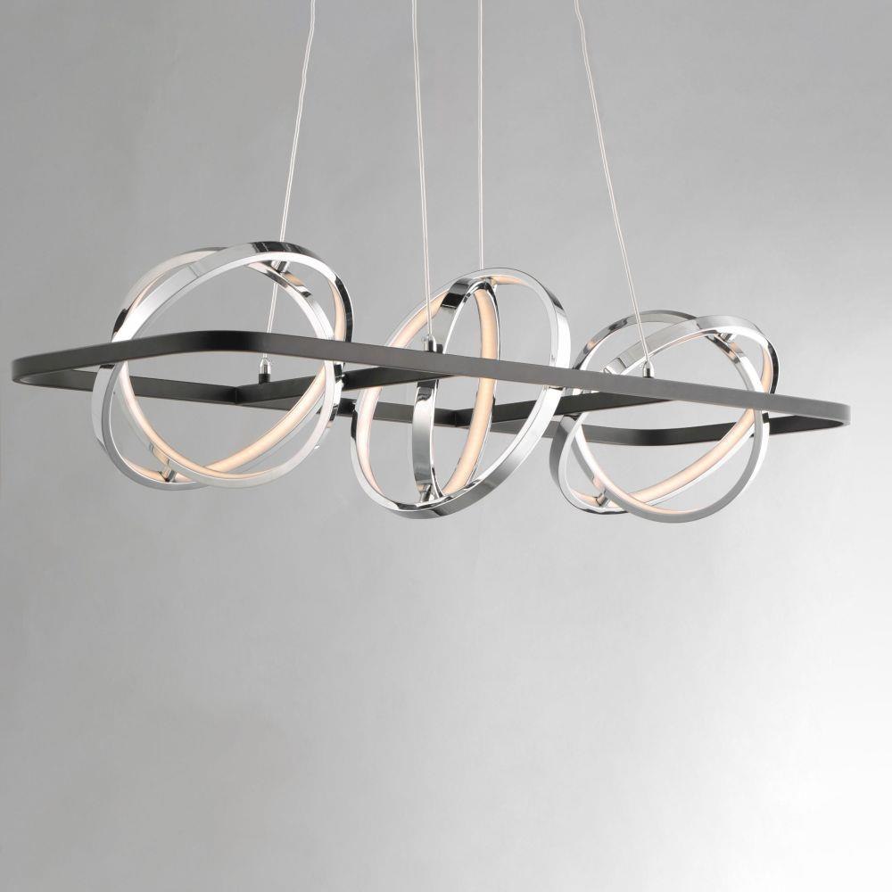 A very unique and interesting design that features concentric bands of Polished Chrome or Black that rotate on 3 axis points and adjusts in multiple directions similar to a gyro. The edge of each slender band encases a small LED strip covered by a frosted lens. This work of art is so much more than just a lighting fixture.