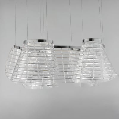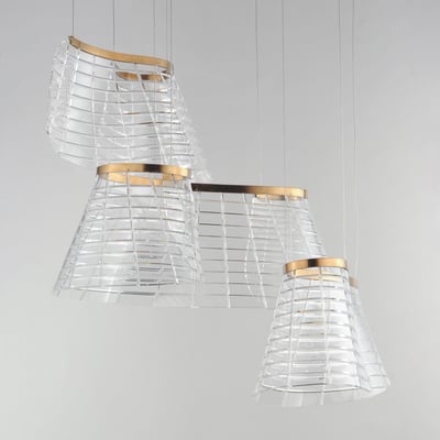 The Tartan Multi-Light Pendant enhances any space with its inspired design reminiscent of Scottish Highlands fabrics. This striking piece features a unique curling structure that appears to billow, creating a dynamic visual effect.