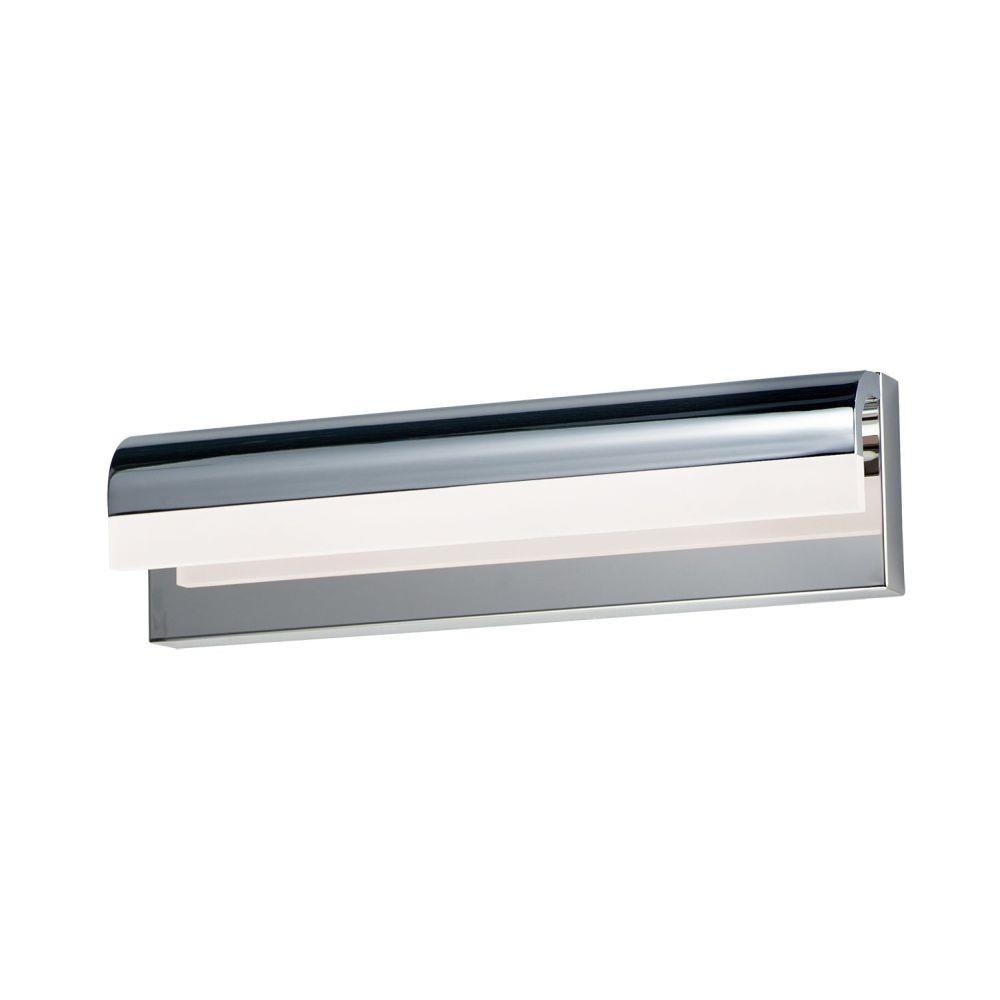 An aluminum frame of Polished Chrome or Black, cascades downward and supports a frosted acrylic diffuser which nicely diffuses the light from the LED enclosed. A perfect complement to the similar bath hardware found in many homes today.
