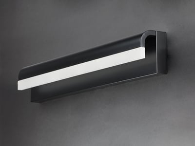 ET2 Waterfall Bathroom Vanity Light in Black finish, featuring a sleek, modern design with cascading LED lights, mounted on an Aluminum base.