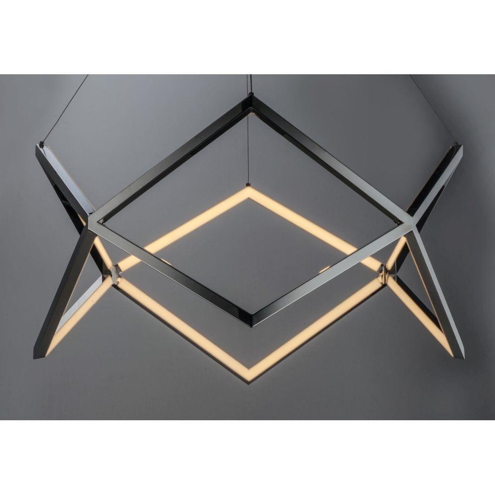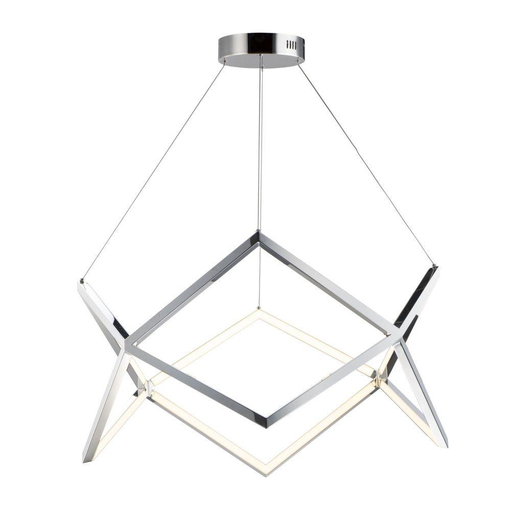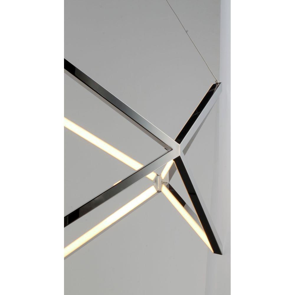 Stainless steel V shaped sections are meticulously welded together to form this beautiful lighting sculpture. Finished in a mirror-like Polished Chrome, this fixture is the epitome of quality and contemporary design. Pair with coordinating accent tables to complete the look.