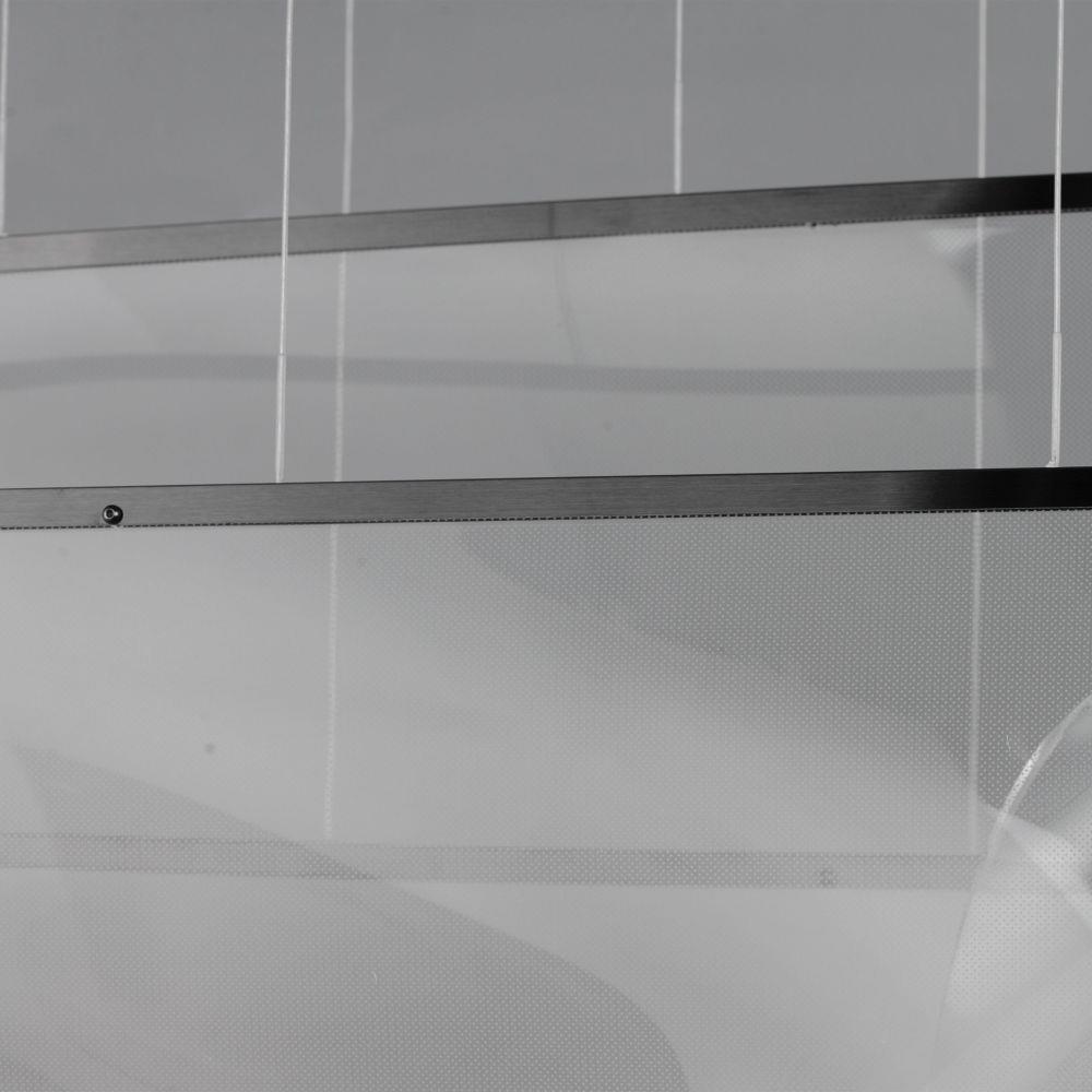 An airy arrangement of abstract forms, the Rinkle pendants feature sheets of transparent acrylic shaped by hand. The light guided acrylic captures the glow of energy efficient LEDs recessed within strips of shining stainless steel, obscuring the source of illumination. Delicately suspended by a series of thin wires, the pendants appear to be floating in an adjustable configuration of weightless light sculpture. Available in Polished Chrome and Brushed Gunmetal, its unique design adds an artistic statement to a variety of interiors with complimentary finishes.