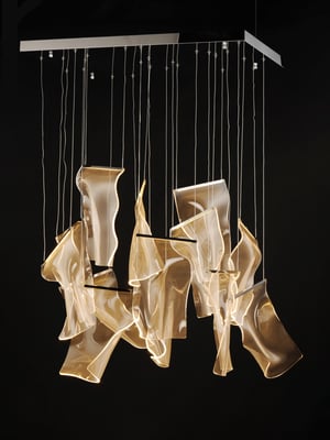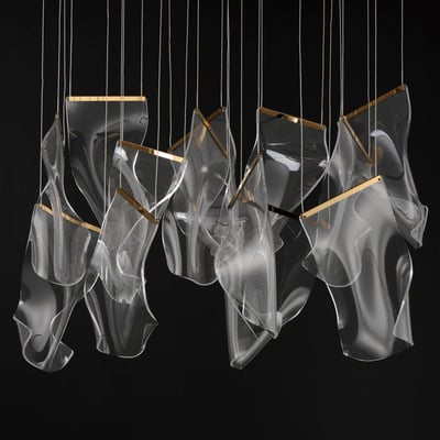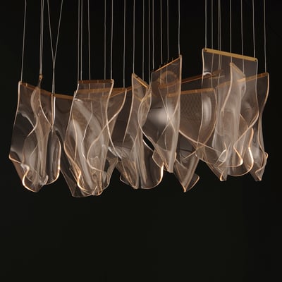 The Rinkle 13-Light Linear Pendant by ET2 is a striking focal point for any modern space.
