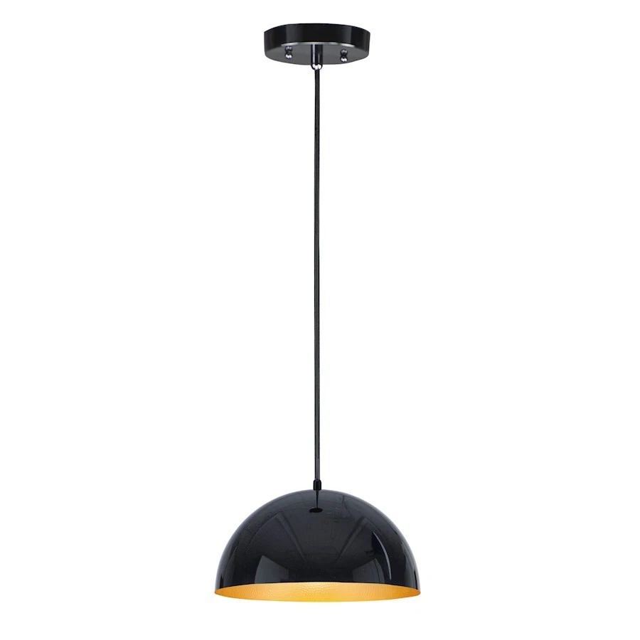 ET2 Lighting Hemisphere 1 Light 14" LED Pendant, Gloss Black/Gold - E24902-GBGLD