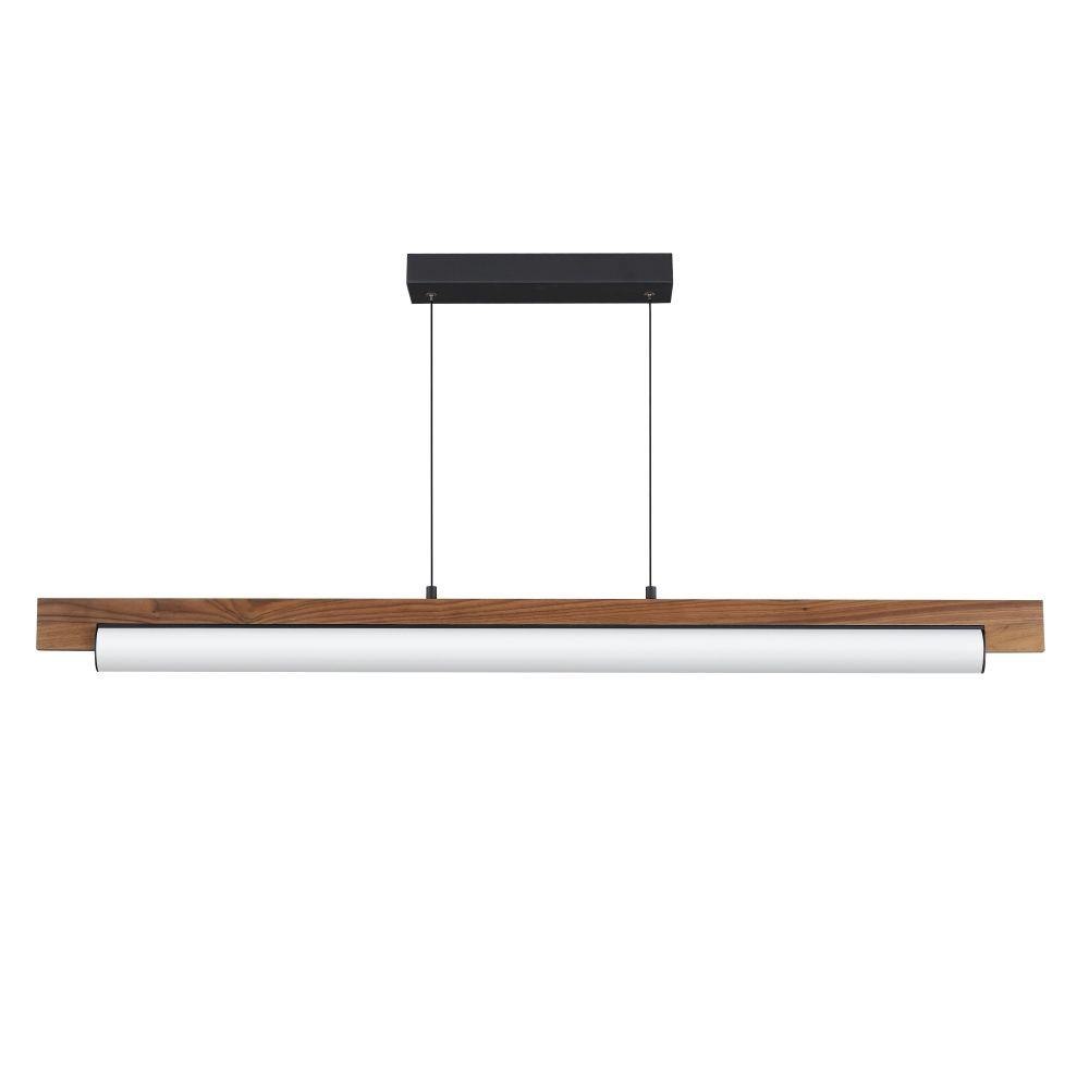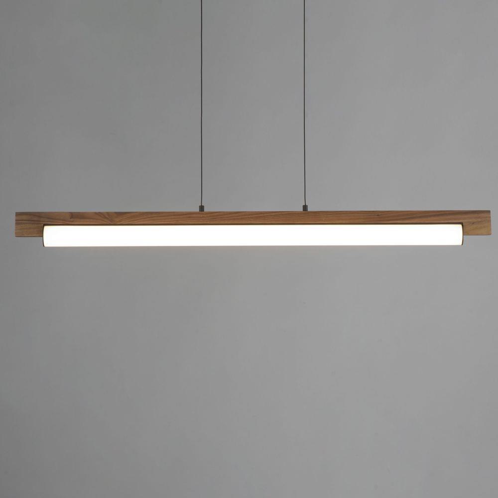 Lengths of wood in Walnut finish frame an LED omnidirectional light source. Whether surface mounted or suspended as a pendant, this collection provides a natural touch to an otherwise modern, minimalist design.
