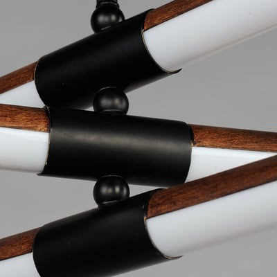 The Rollo 6-Light LED Pendant by ET2 offers a softer approach to modern lighting, with a hydro dipping technique creating an Antique Pecan finish and Matte Black accents.