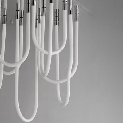 The Soleil Linear Semi-Flush Mount redefines modern lighting with its innovative design, featuring sweeping matte white acrylic tubes that encase an omnidirectional LED light source. Inspired by the dynamic forms of solar flares, this fixture delivers both minimalism and drama, making it an eye-catching addition to any space.