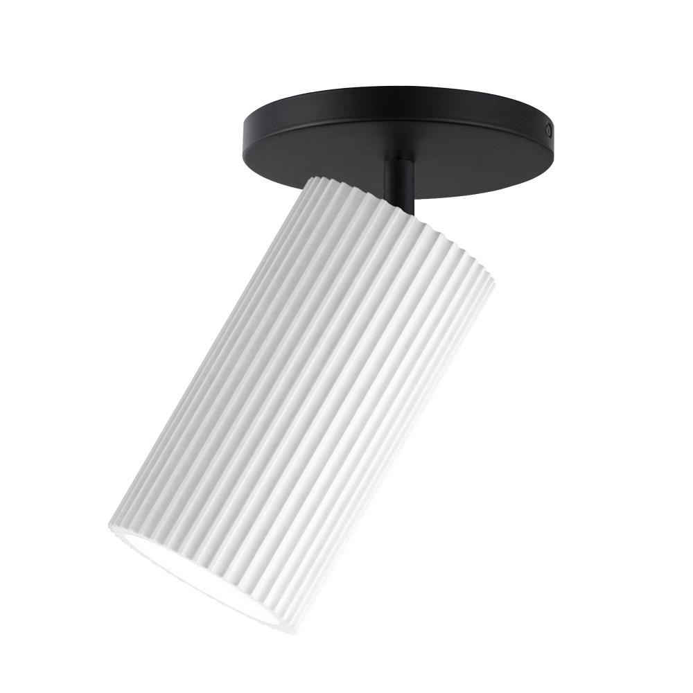Pleated cylinder shades casted in White plaster contrast matte Black structures that provide a crisp, contemporary design. JA8 Listed LED GU10 lamps included brightly illuminate spaces below with excellent color rendering. A surface mount option features a joint that can be positioned to direct the light for the added feature of directing the shades where needed.