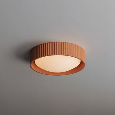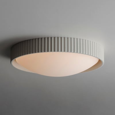 ET2 Souffle LED Flush Mount in gray concrete finish, showcasing a sleek, modern design with soft, diffused lighting for contemporary interiors.