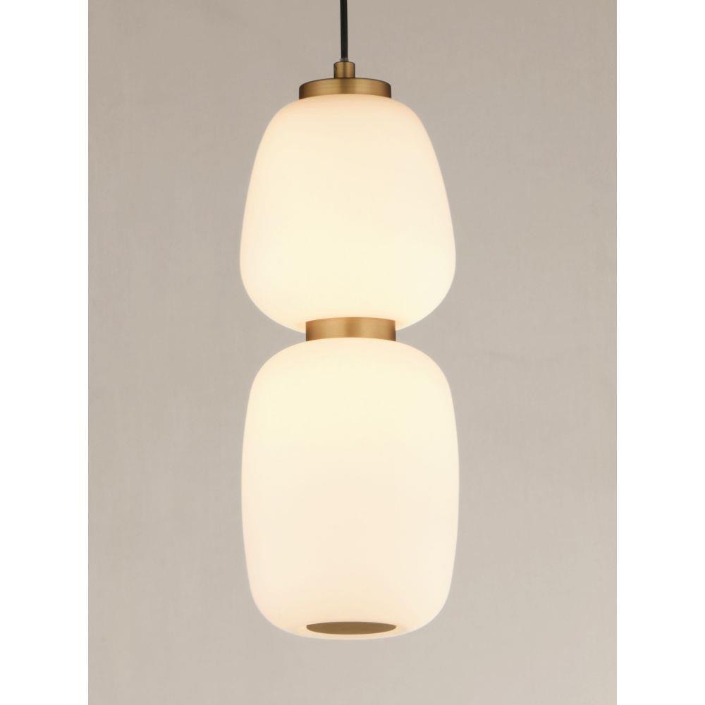 Inspired by Japanese lanterns, this soft contemporary collection features Satin White glass shades of various shapes and sizes mounted on metal frames finished in a dramatic two-tone Gold with Black accents.