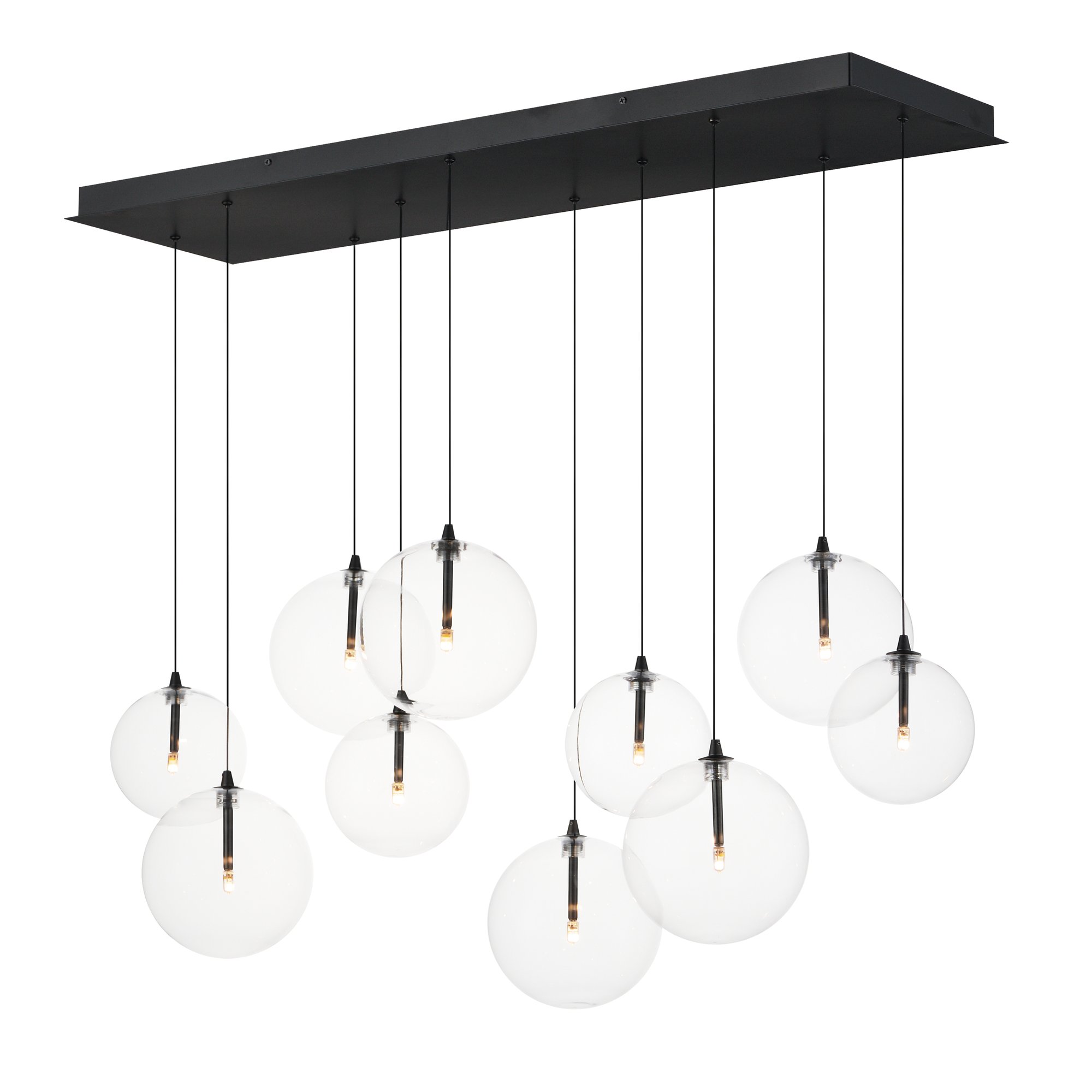 The Global Linear Multi-Light Pendant by ET2 redefines modern lighting with its elegant arrangement of clear blown glass globes. This captivating fixture enhances any room with its sophisticated design and functional brilliance.