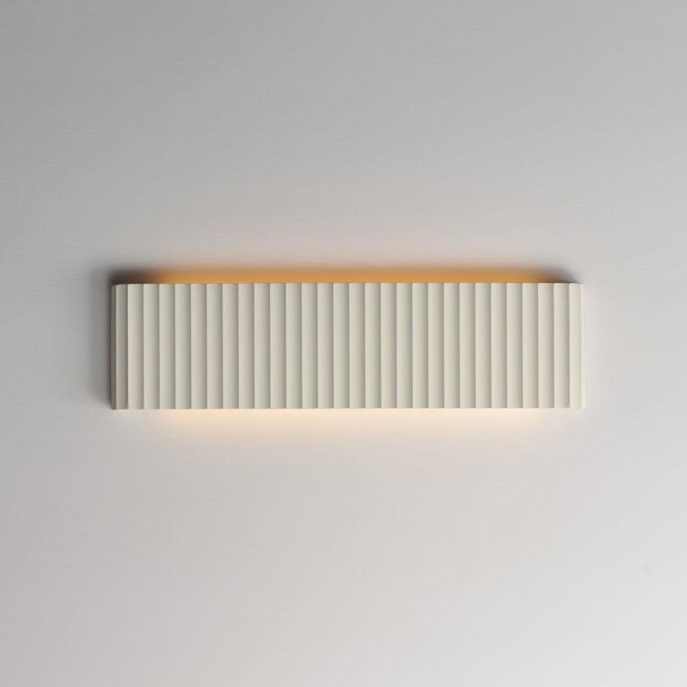 Long spans of fluted concrete panels blend Western classicism with modern technology. Scalloped concrete is finished in a Chalky White finish and suitable for damp locations. Choose from stem hung pendants or backlit wall panels that provide ambient lighting and bring tranquility to spaces.
