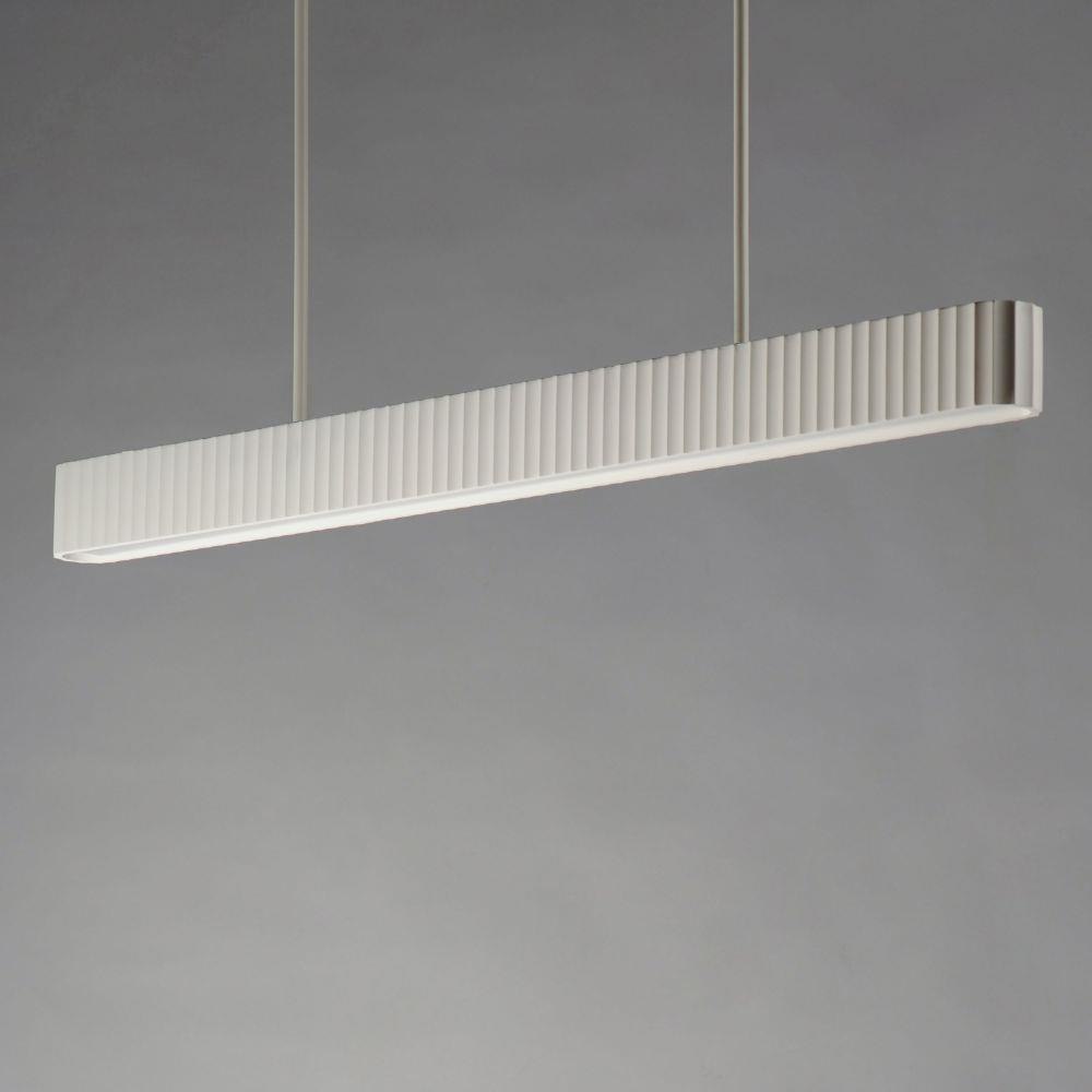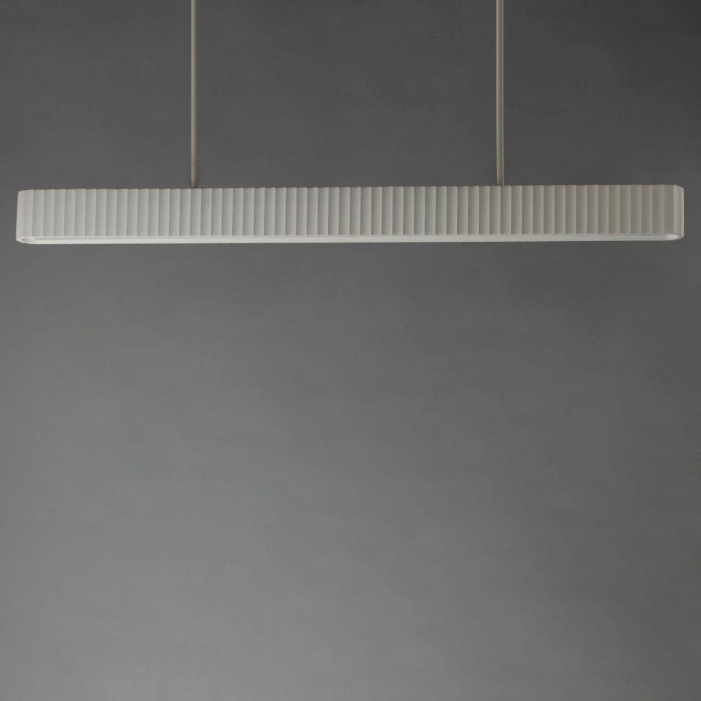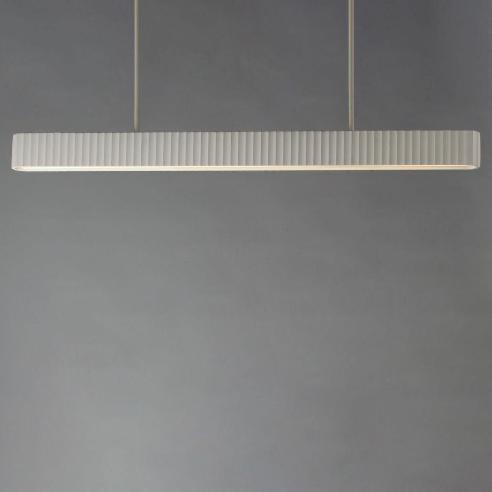 Long spans of fluted concrete panels blend Western classicism with modern technology. Scalloped concrete is finished in a Chalky White finish and suitable for damp locations. Choose from stem hung pendants or backlit wall panels that provide ambient lighting and bring tranquility to spaces.