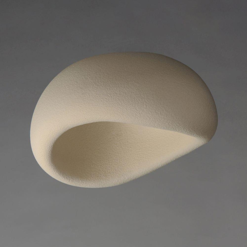 Inspired by the rocky shores of New Zealand's South Island, boulder-like organic forms made of polyurethane are light weight and yet voluminous masses. With a shimmery salt-like texture, the pendants are finished in an off-white Oyster finish. Choose from pendant and flush mount configurations.