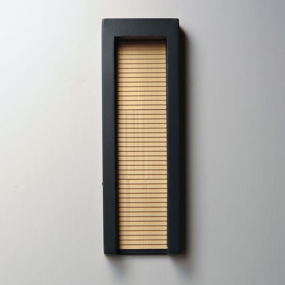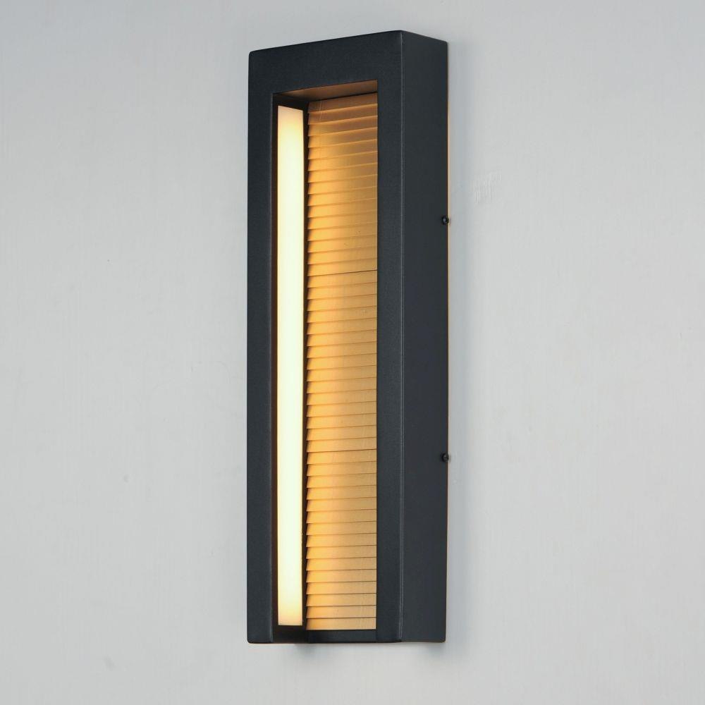 Die cast aluminum frames house a niche of stainless steel corrugated panels in a Gold finish. Two strips of dedicated LED lighting illuminate the washboard shape, which produces a warmer ambient light source when reflected off the contrasting Gold tone.