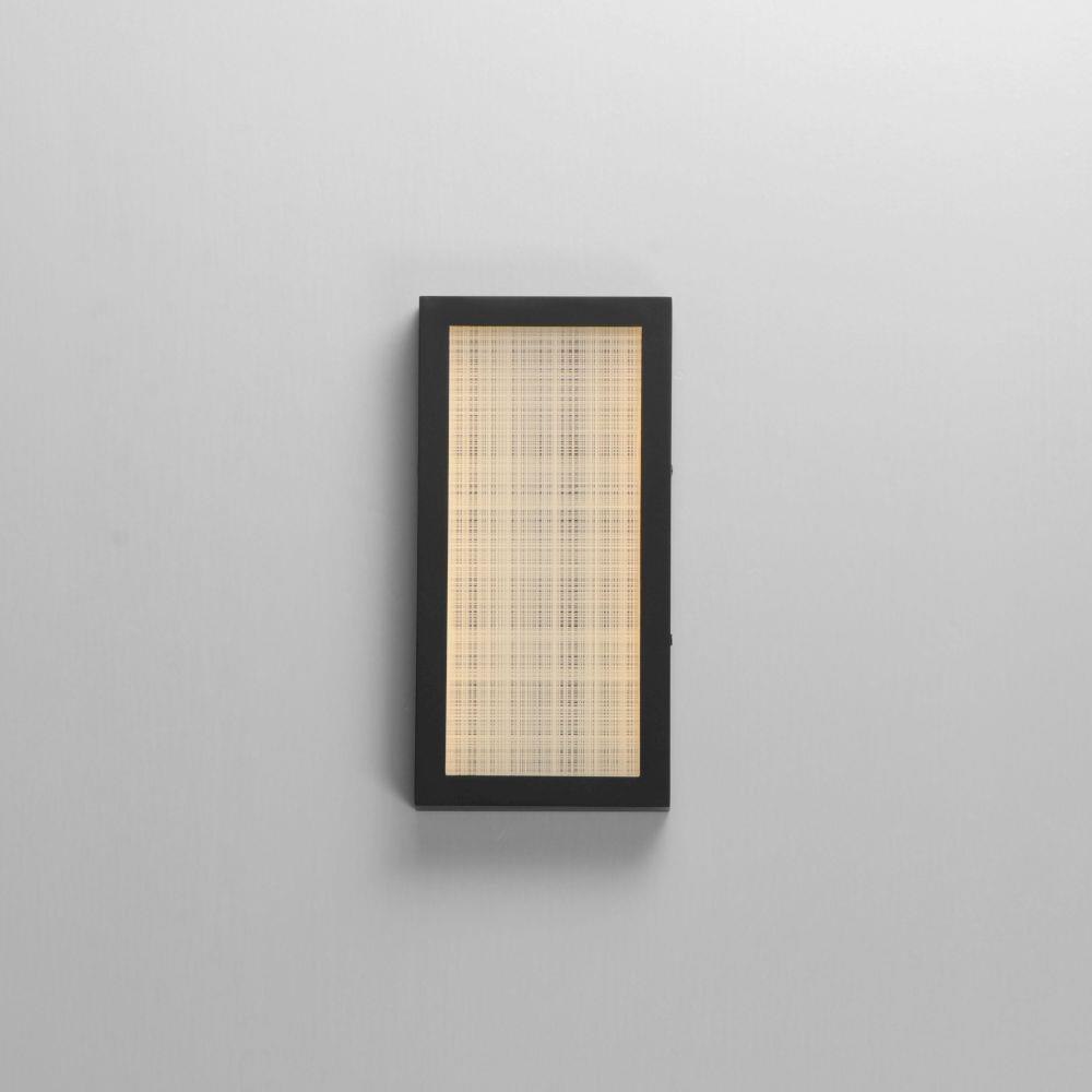 An internally illuminated shadow box is encased in glass with a tartan plaid pattern engraved to mimic linen. The back plate features a polished stainless steel plate adding an almost infinite dimension to the pattern. Constructed of aluminum in Matte Black finish and 304 grade Stainless Steel, the product is also suitable for installations outdoors.