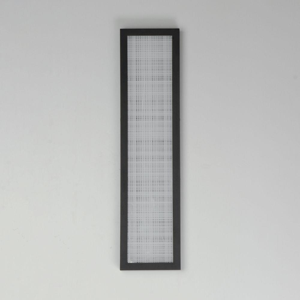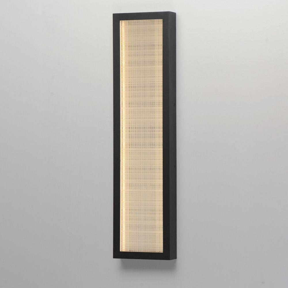 An internally illuminated shadow box is encased in glass with a tartan plaid pattern engraved to mimic linen. The back plate features a polished stainless steel plate adding an almost infinite dimension to the pattern. Constructed of aluminum in Matte Black finish and 304 grade Stainless Steel, the product is also suitable for installations outdoors.