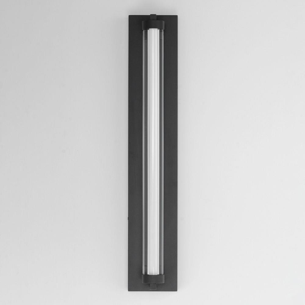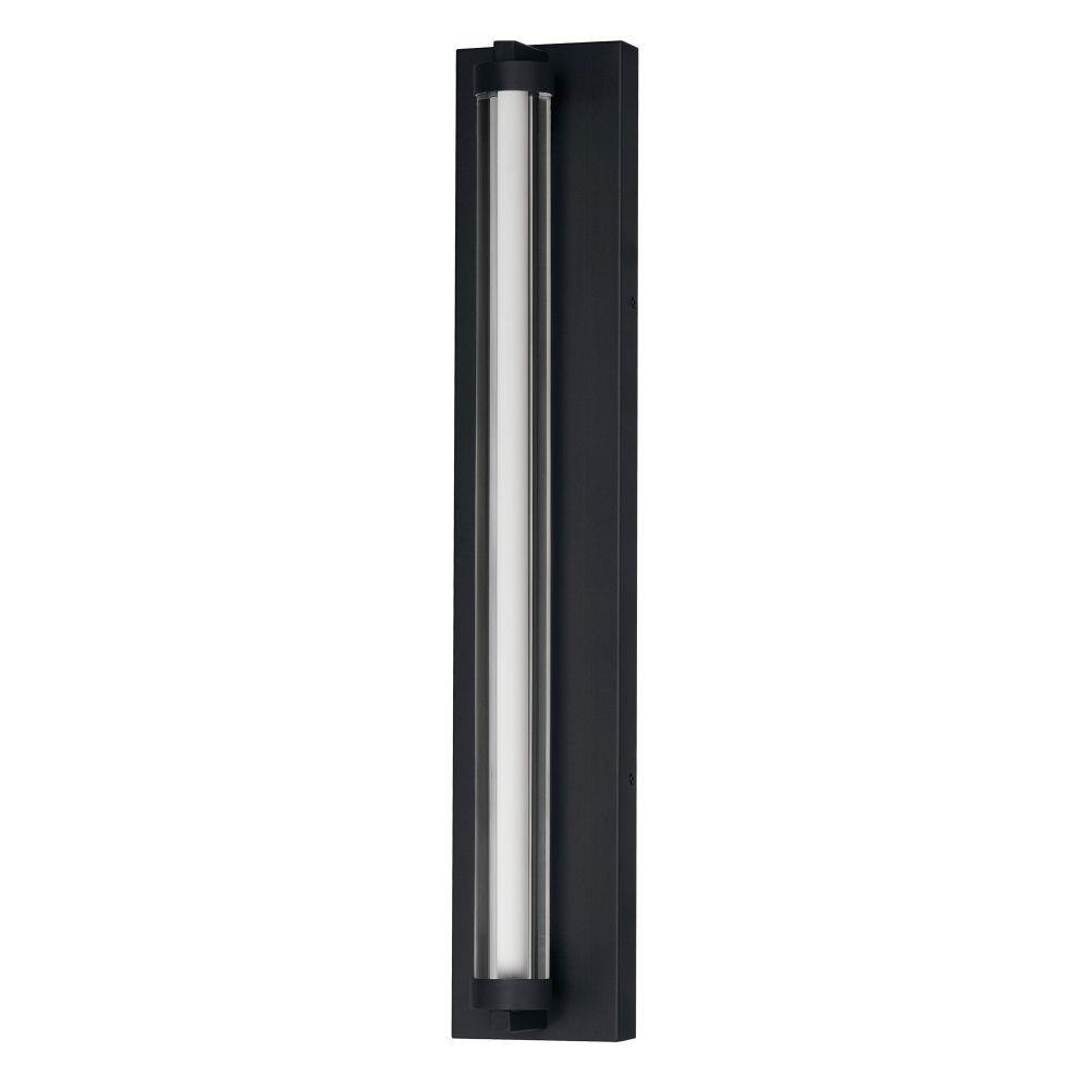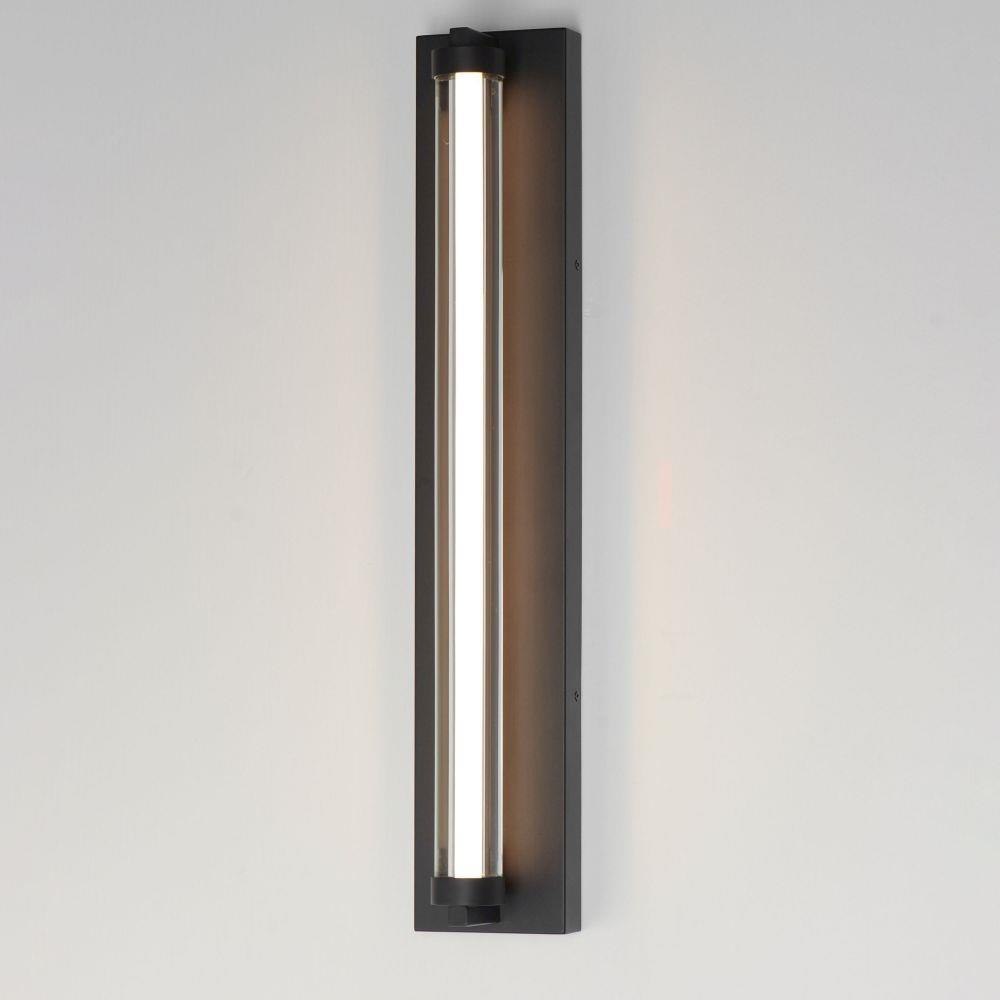 Within the void of clear glass, a white cylindrical tube of LED light extends in two directions. The evenly distributed light source can be adjusted to 5 selectable color temperatures, from warm 2700k to a cool 5000K and neutral white light sources in between. Available in three finish options: matte Black, Natural Aged Brass, and Polished Chrome, these sconces are great for use in bathrooms and along corridors with extensions less than 4 inches for ADA compliance.
