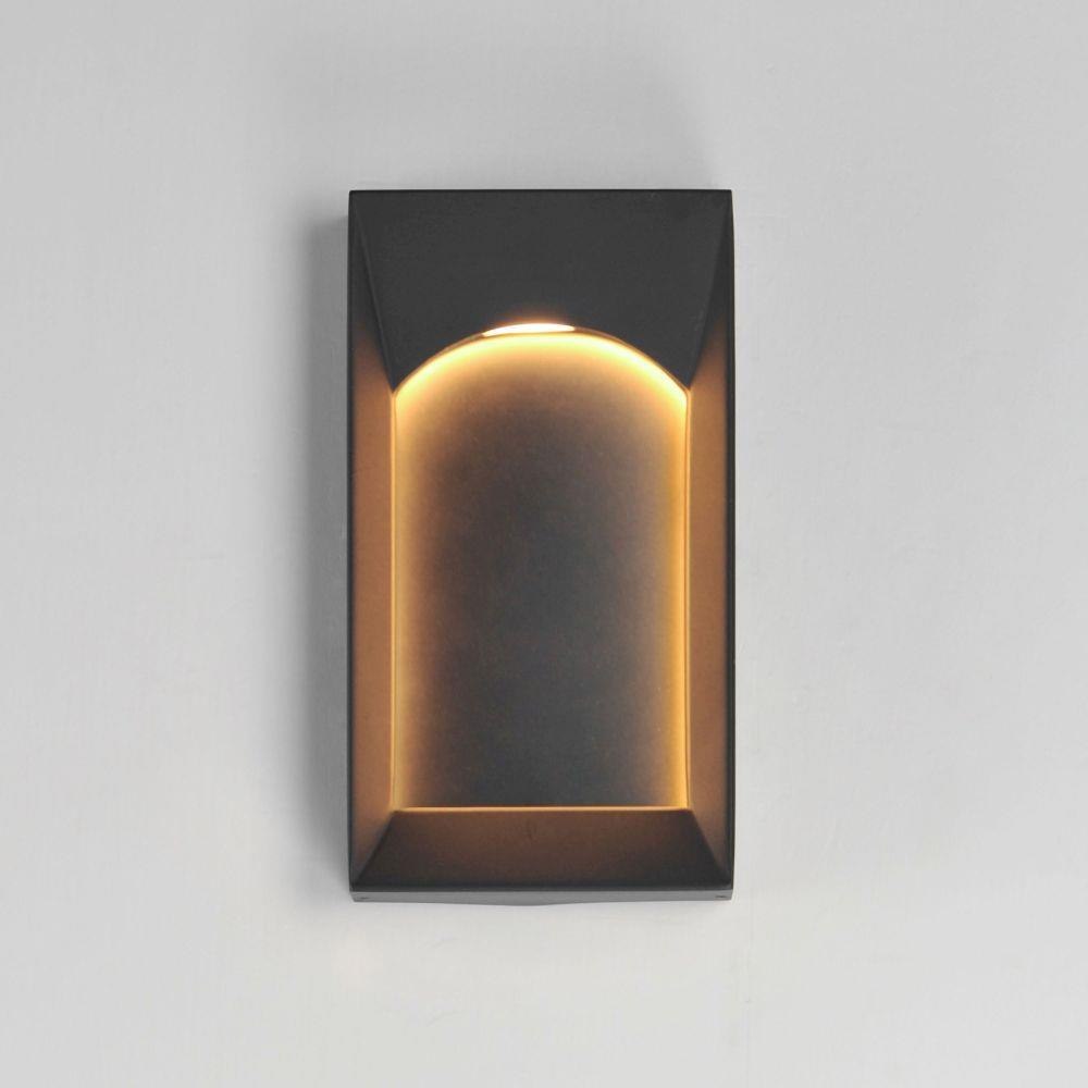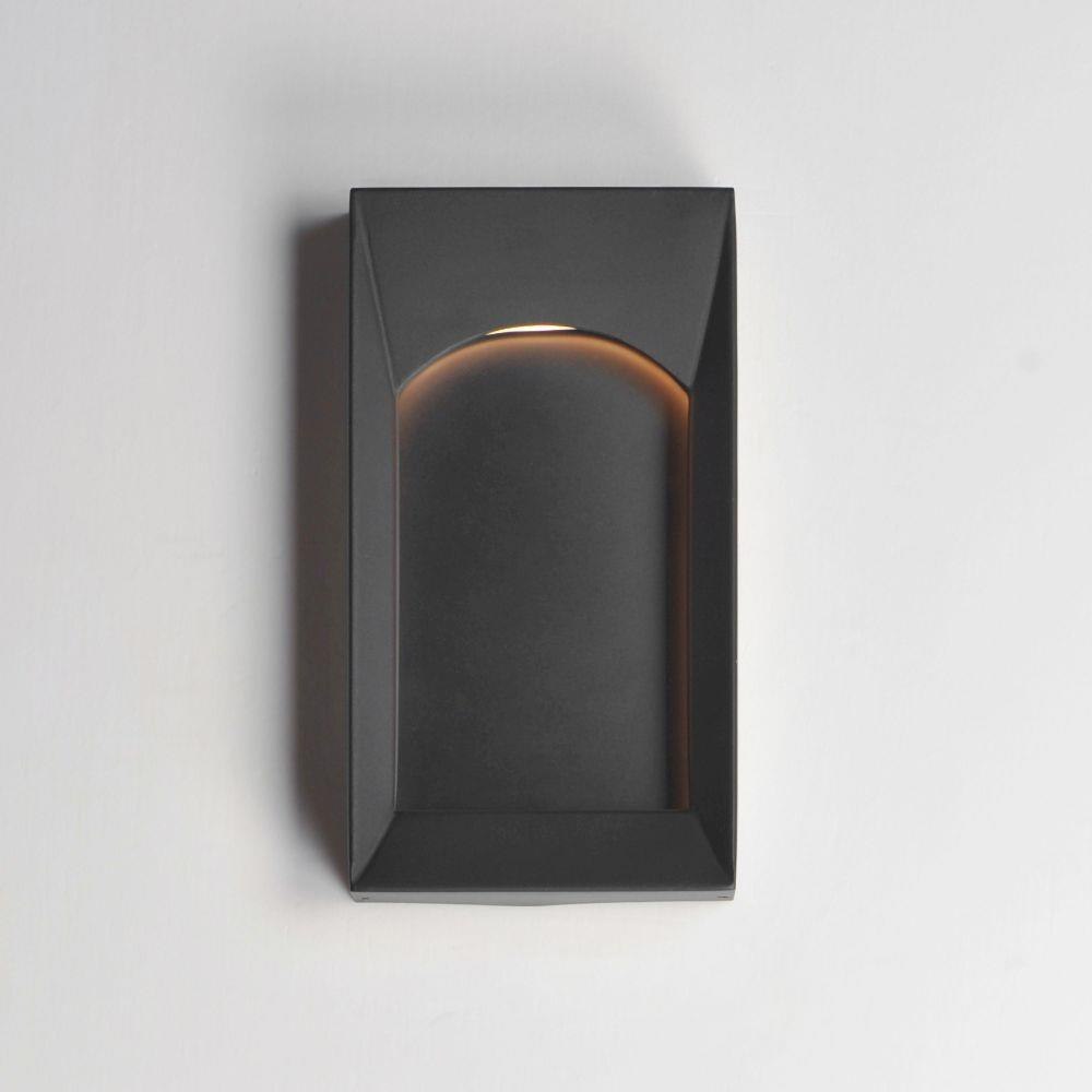 Inspired by the architecture of grand civic pavilions, the 304 grade stainless steel cages feature beveled arches that incorporate LED light sources along their frame. Finished in Matte Black, the simple yet distinctive geometry of the lanterns provide a transitional look that pairs well with both modern and transitional aesthetics.