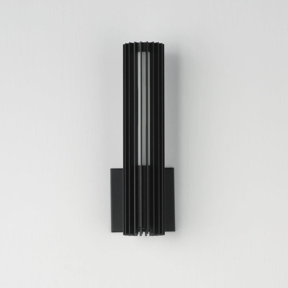 Vertical aluminum strands surround an acrylic LED tube that shines omnidirectional light filtered by the frame. The thin profile of the overall column extends less than 4" offering ADA compliant applications. Available in a variety of sconce sizes, the design is finished in a matte Black finish that complements most settings.
