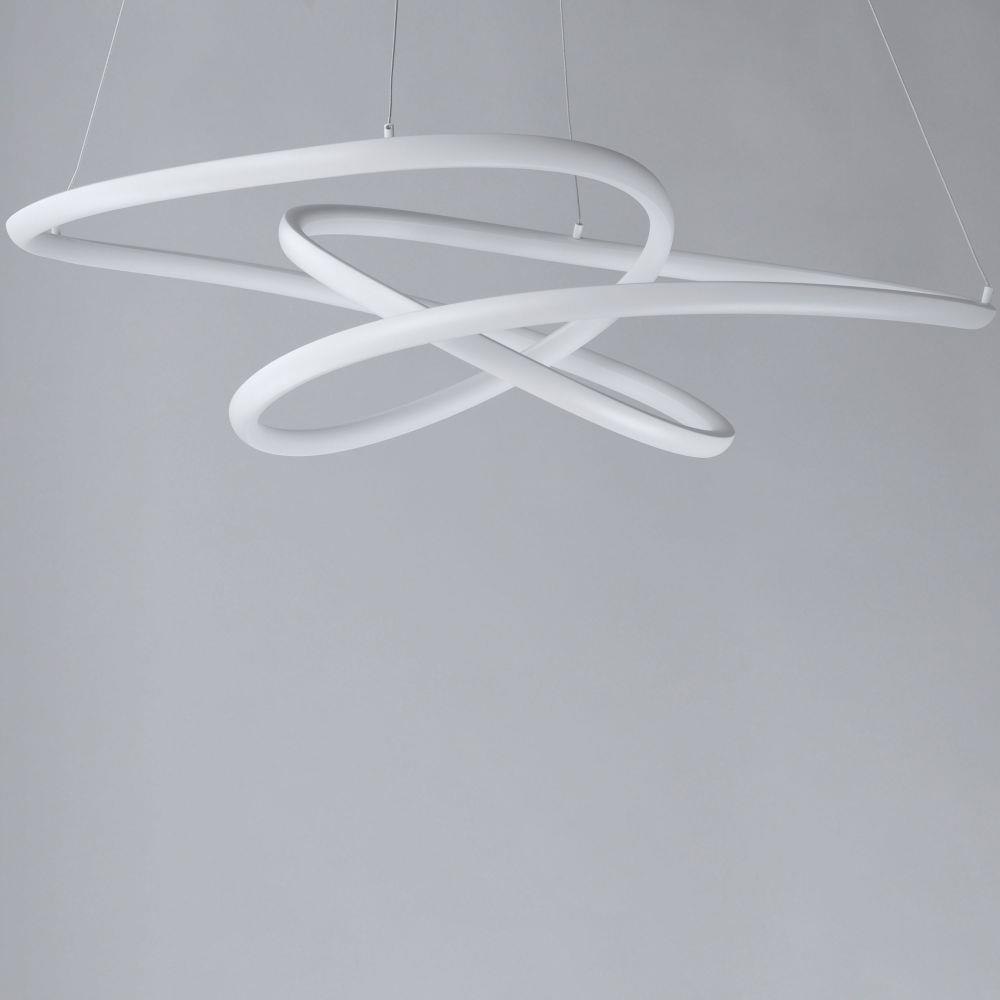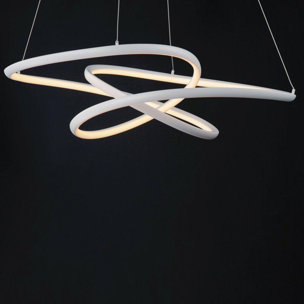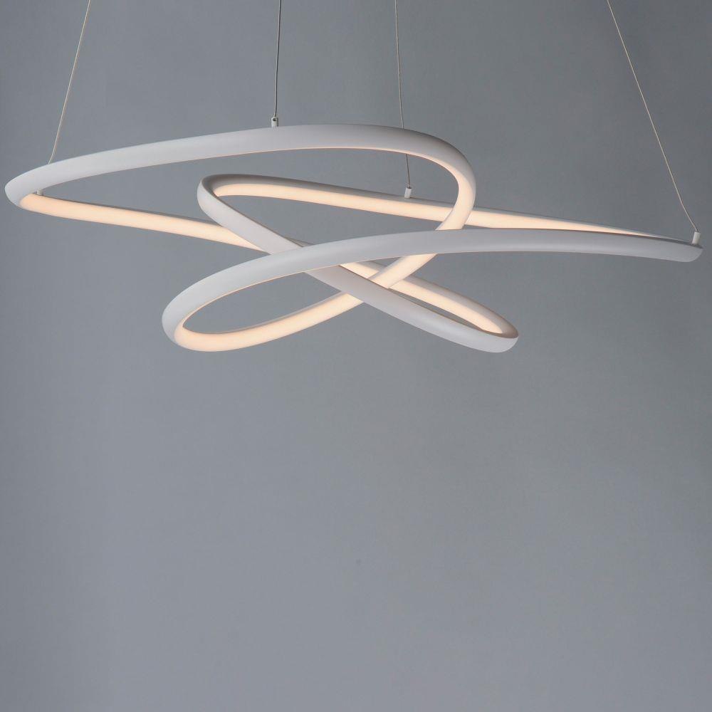 Arched Matte White aluminum channel is artfully formed into unique lighting sculptures. Two rows of LEDs are used to double the light output but are fully dimmable for your comfort level.
