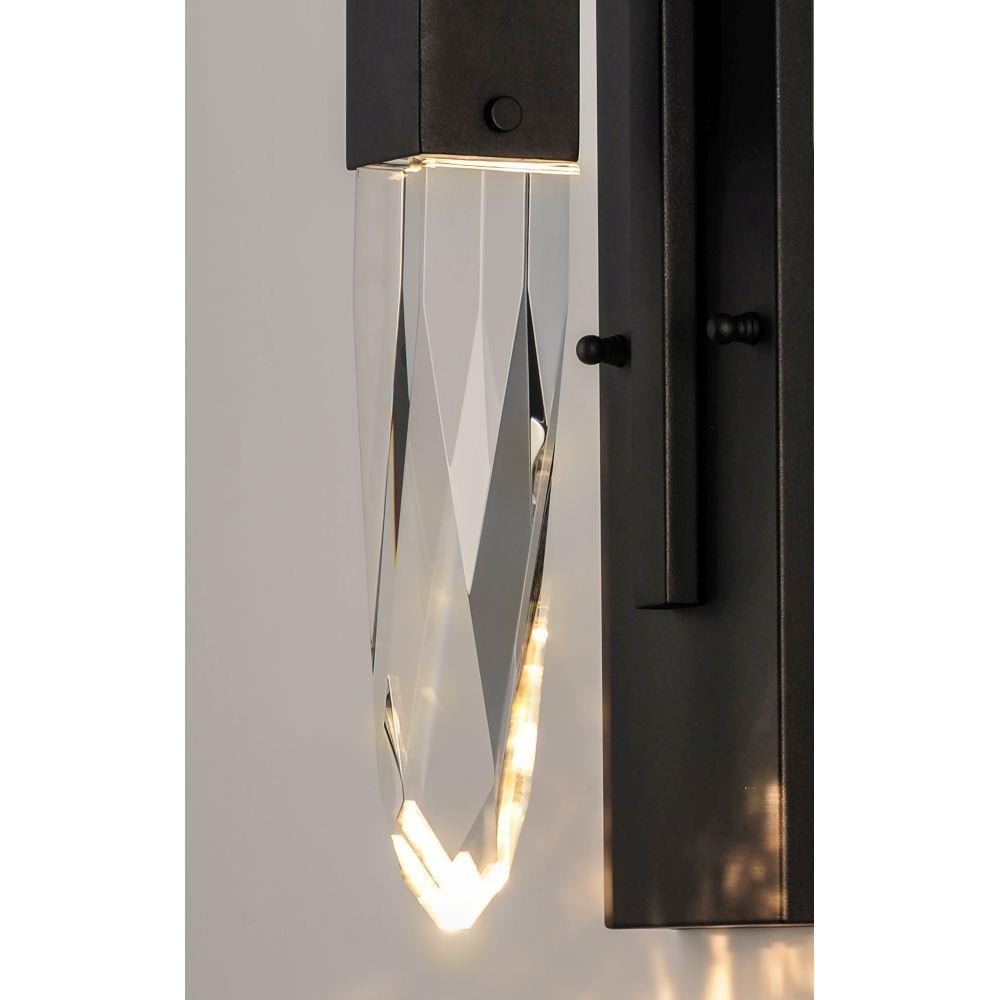 Stalactites of Clear Beveled crystal suspend from your choice of Polished Chrome or Black supports, can be hung at various heights to create a spectacular array. The crystal shimmers as light diffuses through the facets powered by 90 CRI LED dimmable modules.