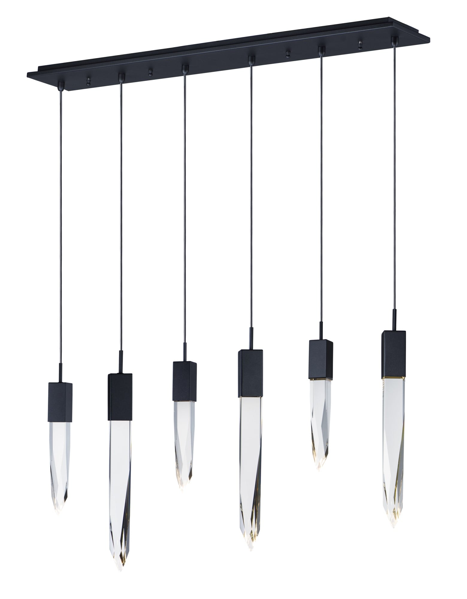 ET2 Quartz Linear Pendant in Black Steel finish, featuring a sleek, modern design with a row of suspended crystal accents for elegant illumination.