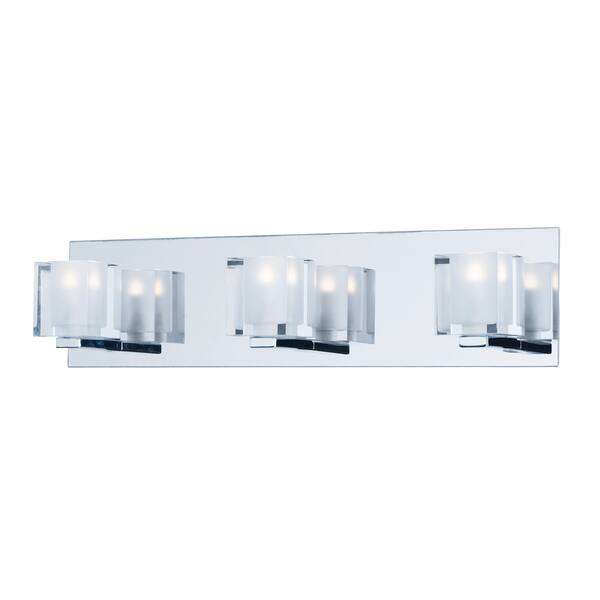 Outfit your bathroom wall with this contemporary Blocs light fixture from Maxim Lighting. Three frosted-glass shades diffuse light for bright illumination, and the polished chrome-finished base offers a sleek look ideal for modern spaces.