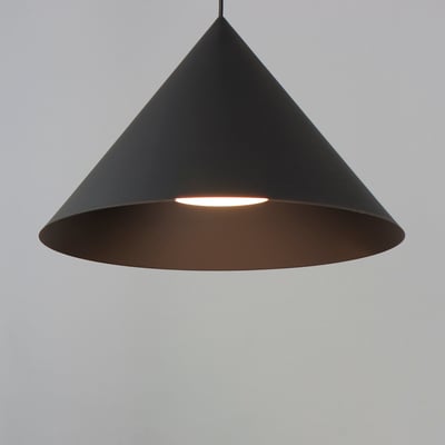 • The pendant boasts a surprisingly bright single light source that is recessed within a secondary smaller aperture cone shade, providing ample lighting without glare.