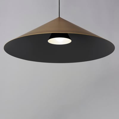 ET2 Pitch Pendant in Antique Brass finish, featuring a sleek, modern design with a conical shape, perfect for contemporary interiors.