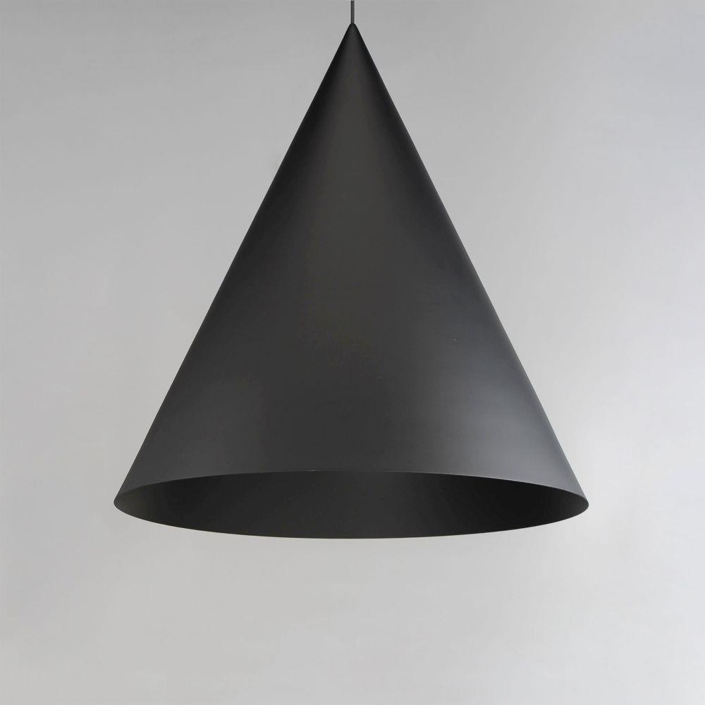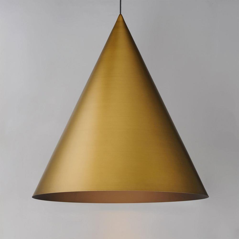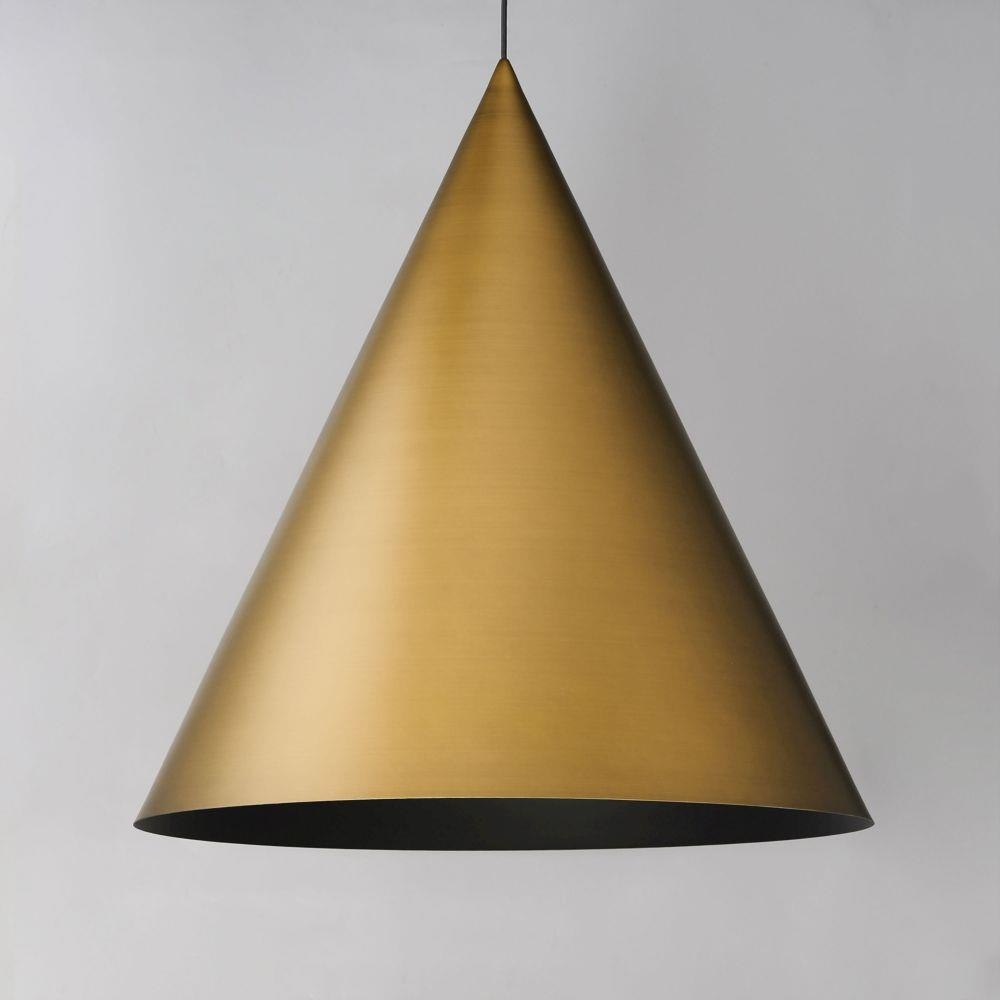 Sleek and simply, the effortlessly chic oversized cone pendants add a modern touch to elevate your space. A surprisingly bright single light source is recessed within a secondary smaller aperture cone shade painted white on its interior to reflect more and beam additional lighting downward without glare. This distinctive cut off accentuates the black finish on the surfaces between two cones. Available in Black and Antique Brass, this pendant series exemplifies the enduring elegance of the cone form in design.